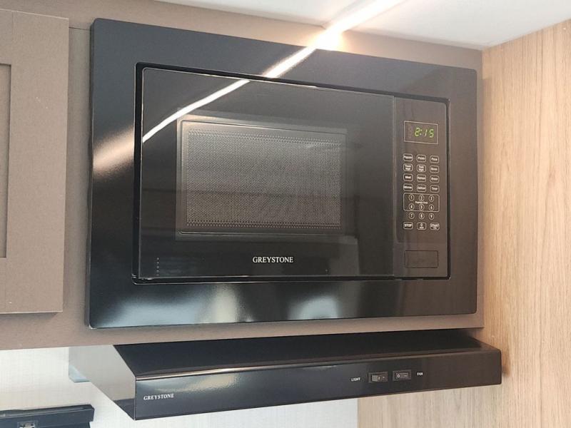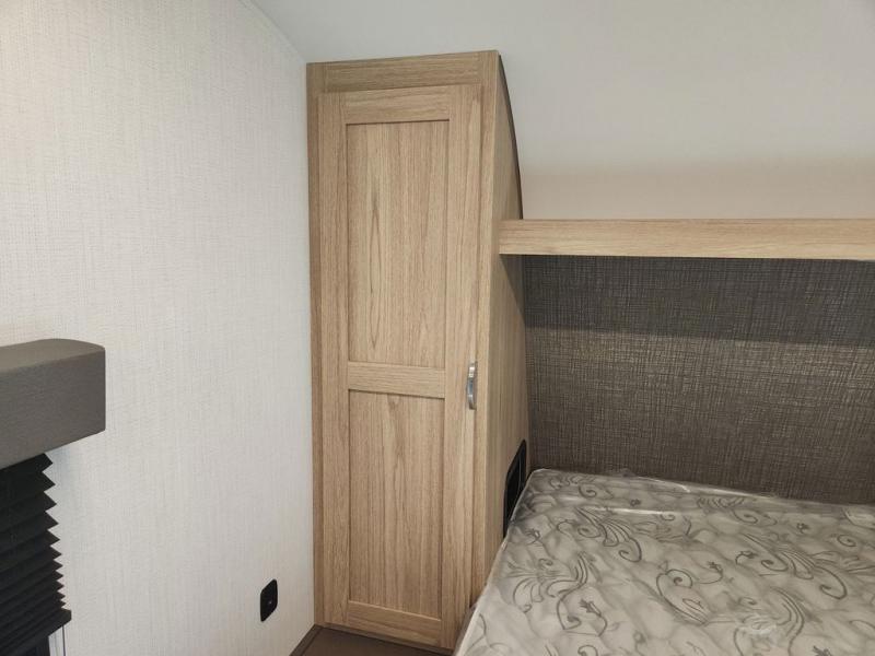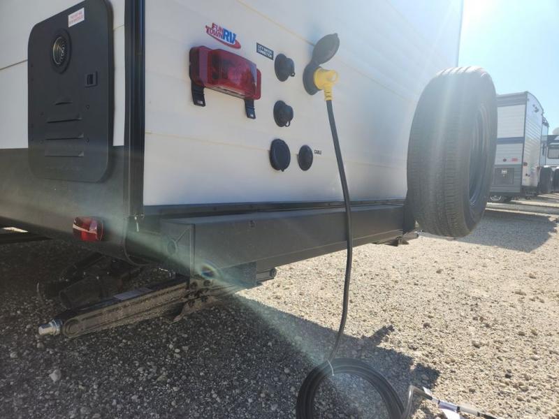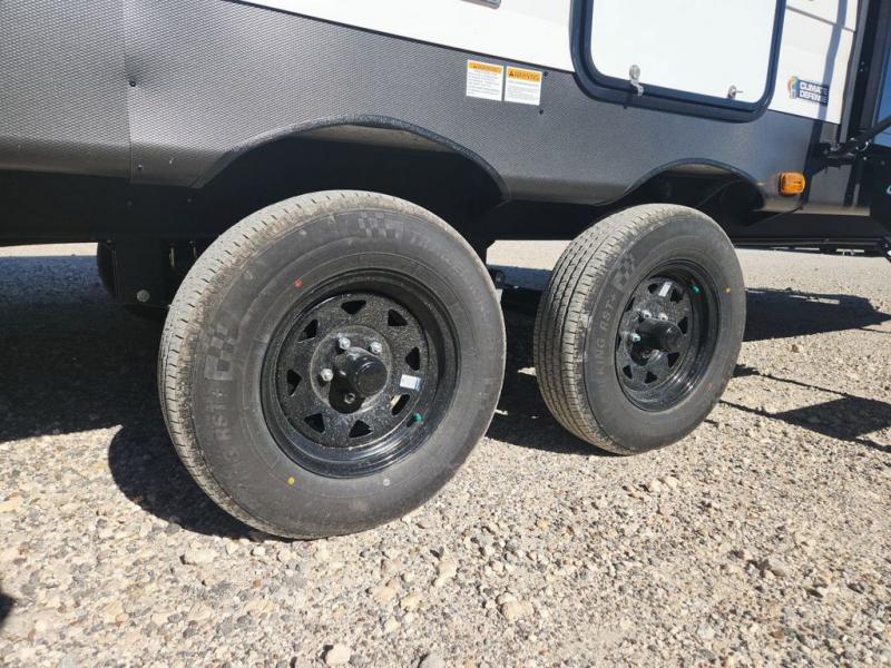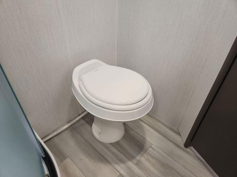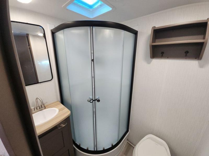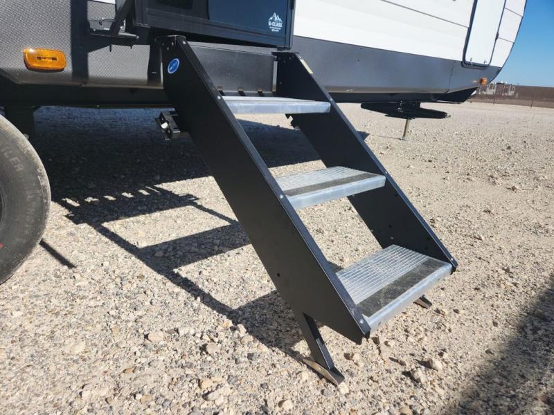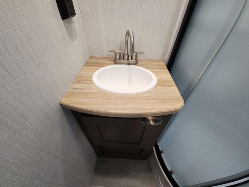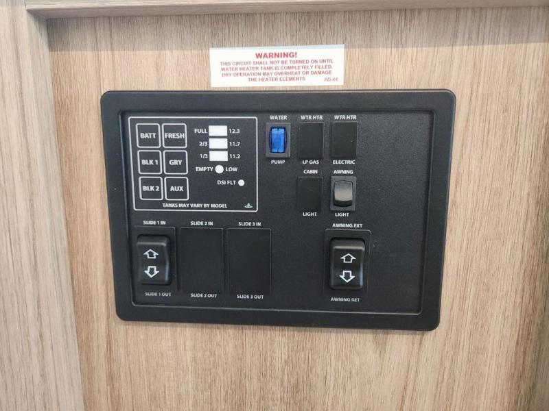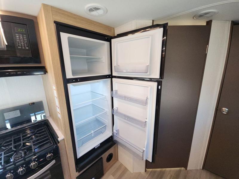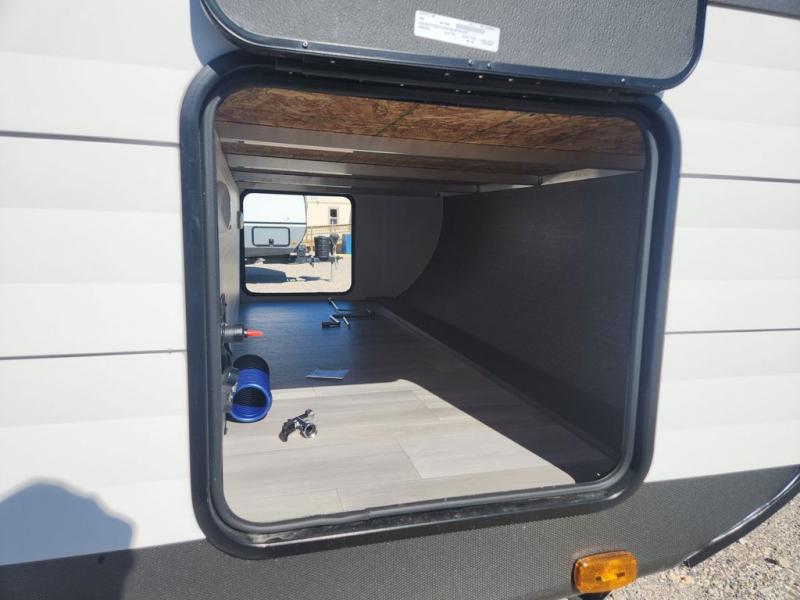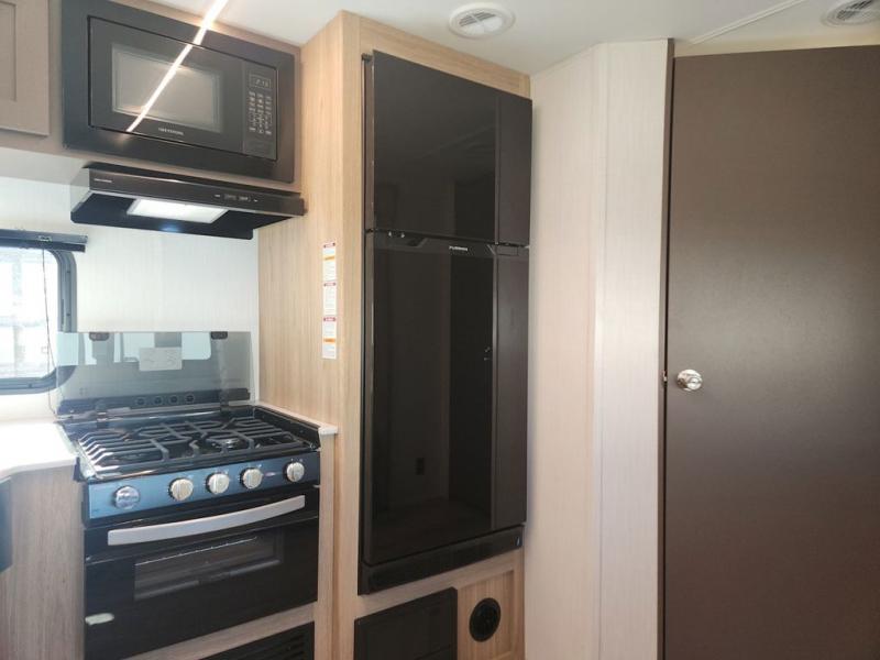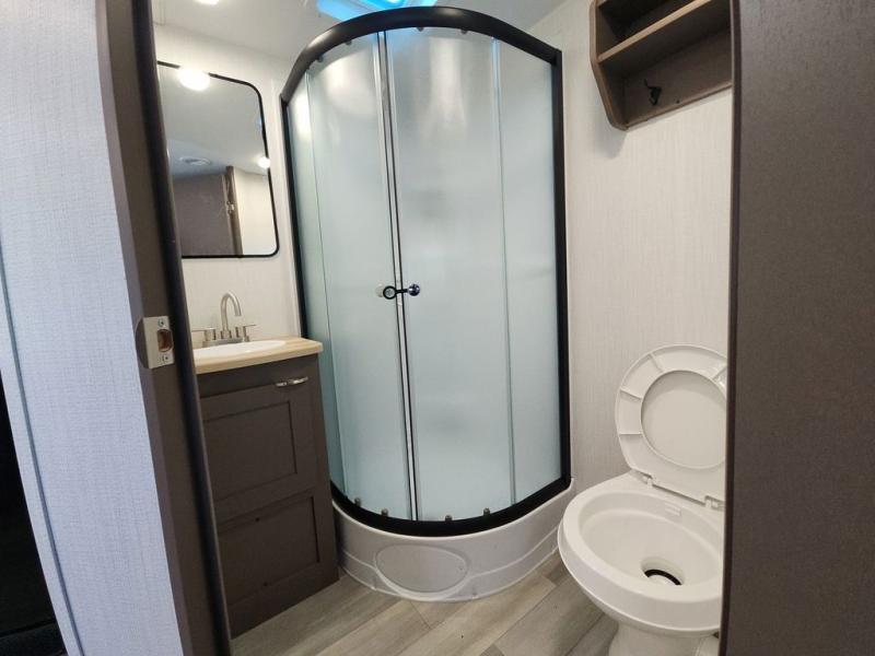 Sleeping for five or six depending on size makes this a great family trailer! A large slide in the combined kitchen and living room allows plenty of space for everyone to easily move around. Enjoy relaxing on the Lux Lounge which can also double as sleeping space for family or friends. There is also a 42" x 76" booth dinette for meals and games which can also be transformed into sleeping if needed. Both seating spaces can easily view the fireplace while relaxing inside. The queen bed in the front private bedroom will provide a great night's rest after adventuring all day, and in the morning you can create a hearty breakfast using the three burner cooktop. A spacious rear corner bath provides a radius shower, toilet, and sink so everyone can feel their best. On the outside, a full pass-through compartment features ample storage for camp chairs, an outdoor rug for under the 18' awning, and so much more!