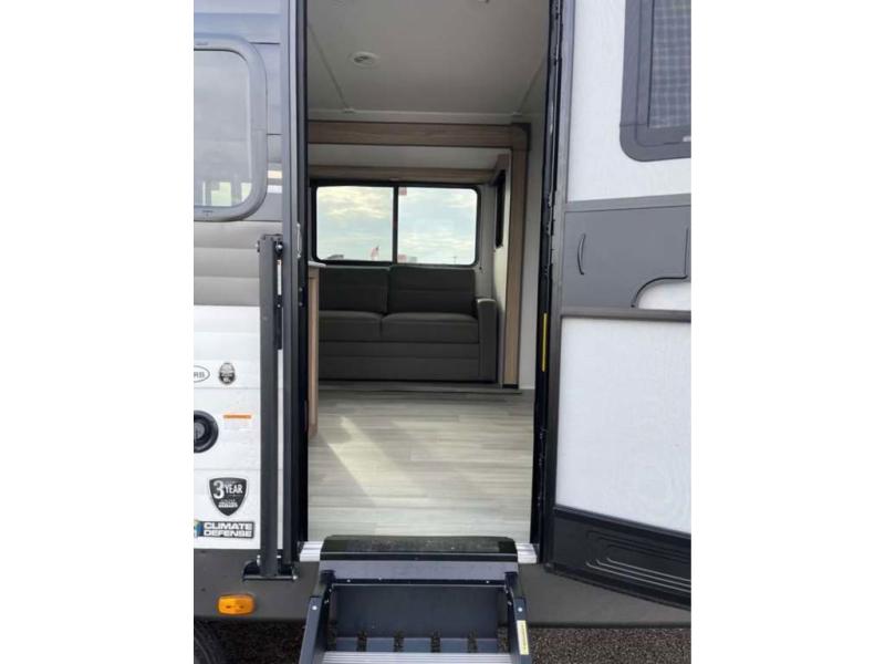 With any Avenir travel trailer by Cruiser RV, you will enjoy affordable luxury at every turn! The smooth corrugated metal exterior and industry leading 3X's full-height cross-members provide a durable foundation, and the Cruiser climate defense heated/enclosed underbelly helps extend your camping season. There is batten strip lighting with a dimmer, max storage in the deluxe curated kitchen, and thoughtfully located USB ports and 110V charging outlets to keep your electronics charged. A central control panel lets you easily access your units functions, and the Wi-Fi prep will give you the option to stay connected while you camp. Each model also features a tinted exterior glass door, an on-demand tankless water heater, solid flip-down steps with a telescoping handrail, and a roof mounted 50W solar panel with a 10A charge controller for added convenience.