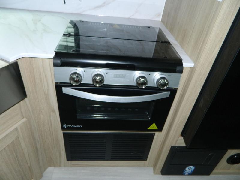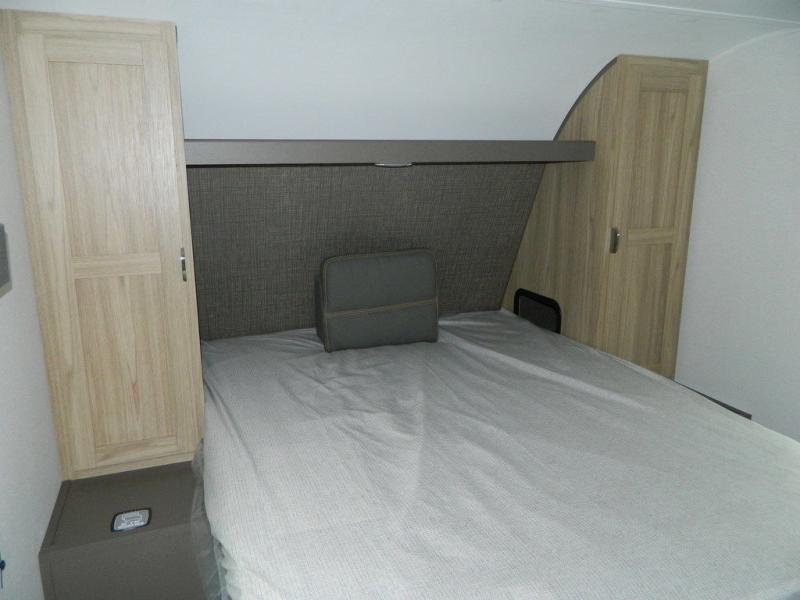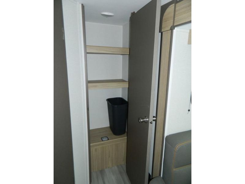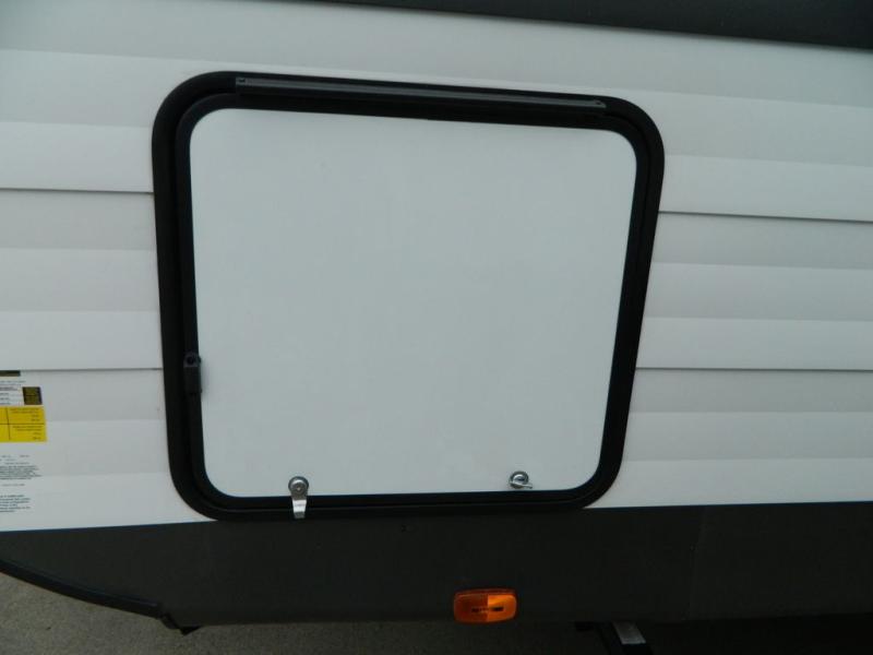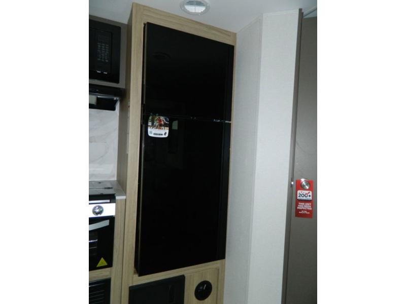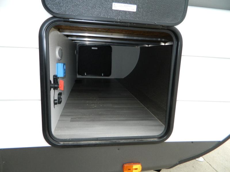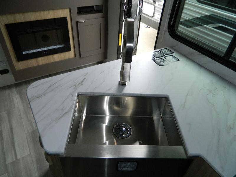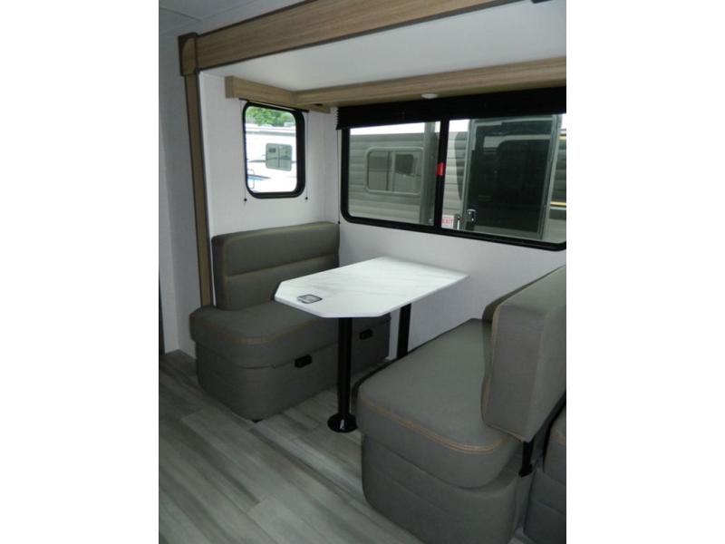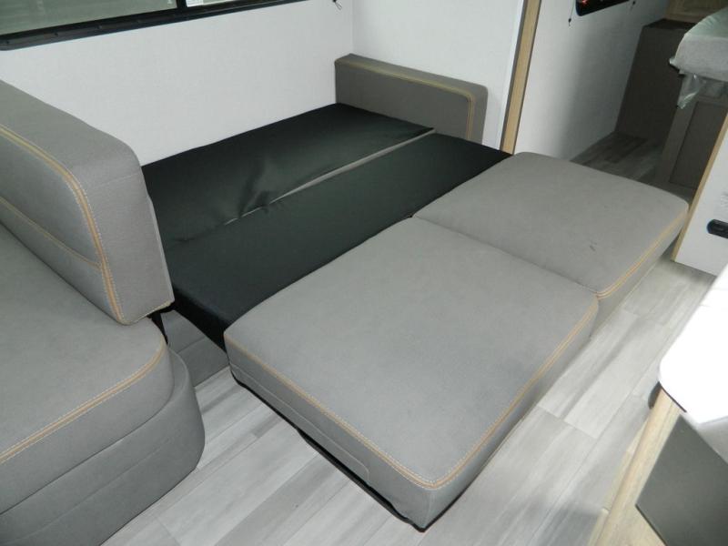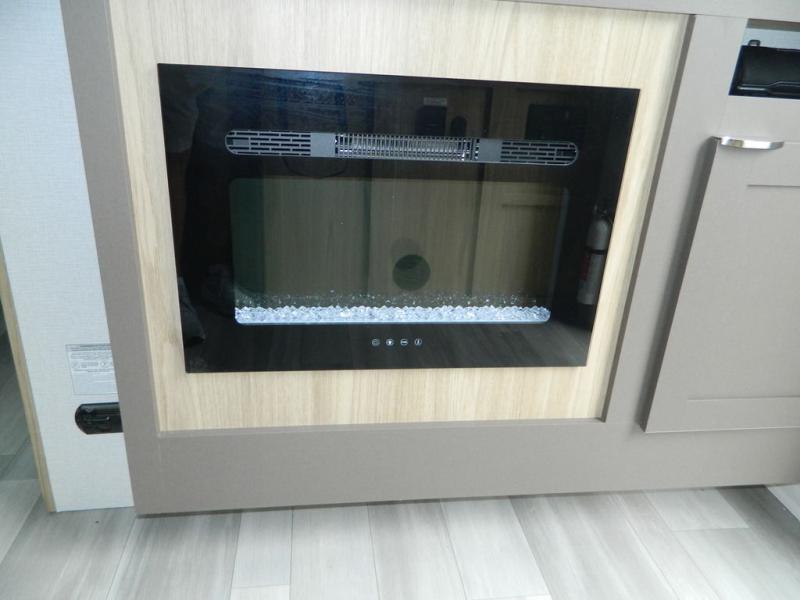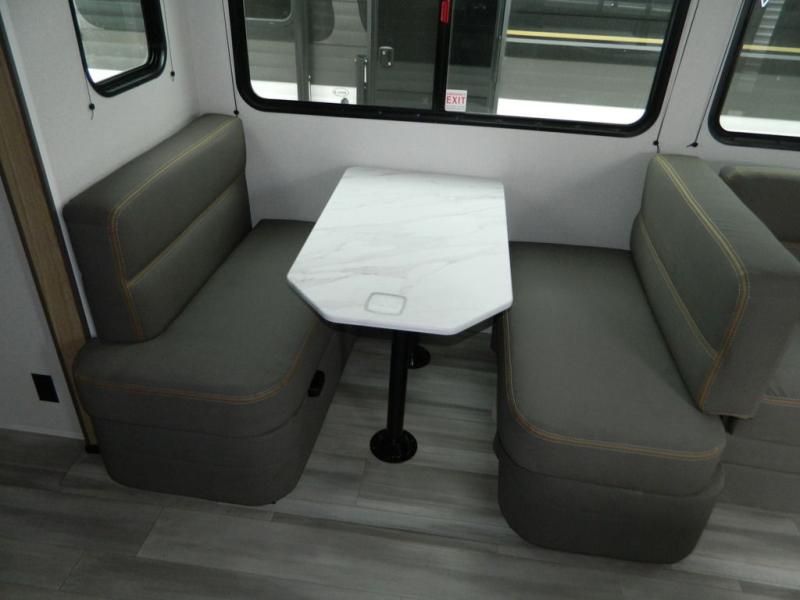 Sleeping for five or six depending on size makes this a great family trailer! A large slide in the combined kitchen and living room allows plenty of space for everyone to easily move around. Enjoy relaxing on the Lux Lounge which can also double as sleeping space for family or friends. There is also a 42" x 76" booth dinette for meals and games which can also be transformed into sleeping if needed. Both seating spaces can easily view the fireplace while relaxing inside. The queen bed in the front private bedroom will provide a great night's rest after adventuring all day, and in the morning you can create a hearty breakfast using the three burner cooktop. A spacious rear corner bath provides a radius shower, toilet, and sink so everyone can feel their best. On the outside, a full pass-through compartment features ample storage for camp chairs, an outdoor rug for under the 18' awning, and so much more!