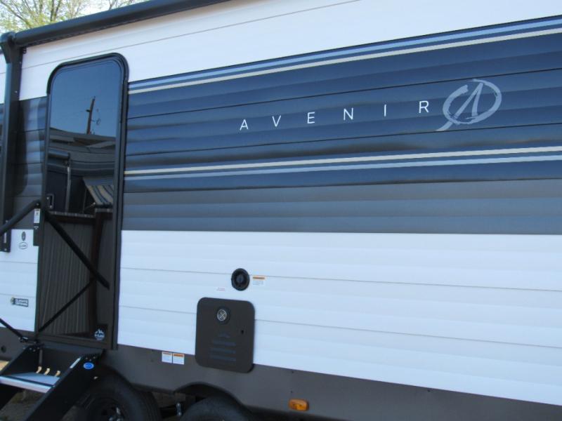 With any Avenir travel trailer by Cruiser RV, you will enjoy affordable luxury at every turn! The smooth corrugated metal exterior and industry leading 3X's full-height cross-members provide a durable foundation, and the Cruiser climate defense heated/enclosed underbelly helps extend your camping season. There is LED batten strip lighting with a dimmer, max storage in the deluxe curated kitchen, and thoughtfully located USB ports and 110V charging outlets to keep your electronics charged. A central control panel lets you easily access your units functions, and the Wi-Fi prep will give you the option to stay connected while you camp. Each model also features a tinted exterior glass door, an on-demand tankless water heater, solid flip-down steps with a telescoping handrail, and a roof mounted 50W solar panel with a 10A charge controller for added convenience.