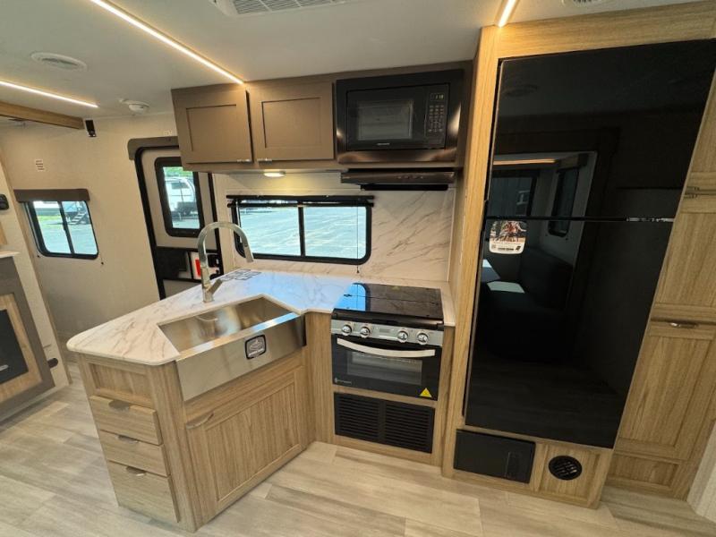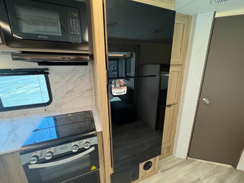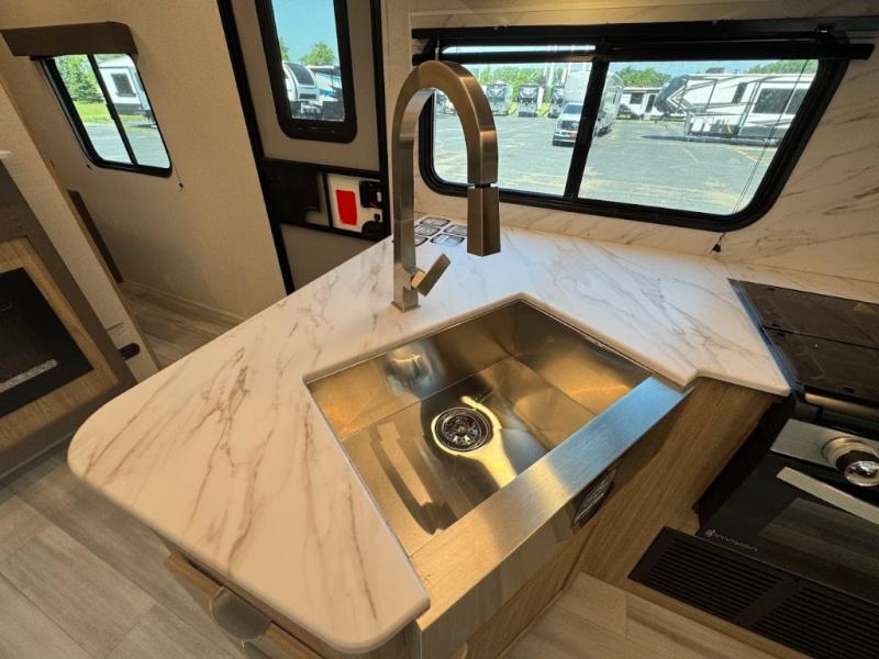 With any Avenir travel trailer by Cruiser RV, you will enjoy affordable luxury at every turn! The smooth corrugated metal exterior and industry leading 3X's full-height cross-members provide a durable foundation, and the Cruiser climate defense heated/enclosed underbelly helps extend your camping season. There is LED batten strip lighting with a dimmer, max storage in the deluxe curated kitchen, and thoughtfully located USB ports and 110V charging outlets to keep your electronics charged. A central control panel lets you easily access your units functions, and the Wi-Fi prep will give you the option to stay connected while you camp. Each model also features a tinted exterior glass door, an on-demand tankless water heater, solid flip-down steps with a telescoping handrail, and a roof mounted 50W solar panel with a 10A charge controller for added convenience.