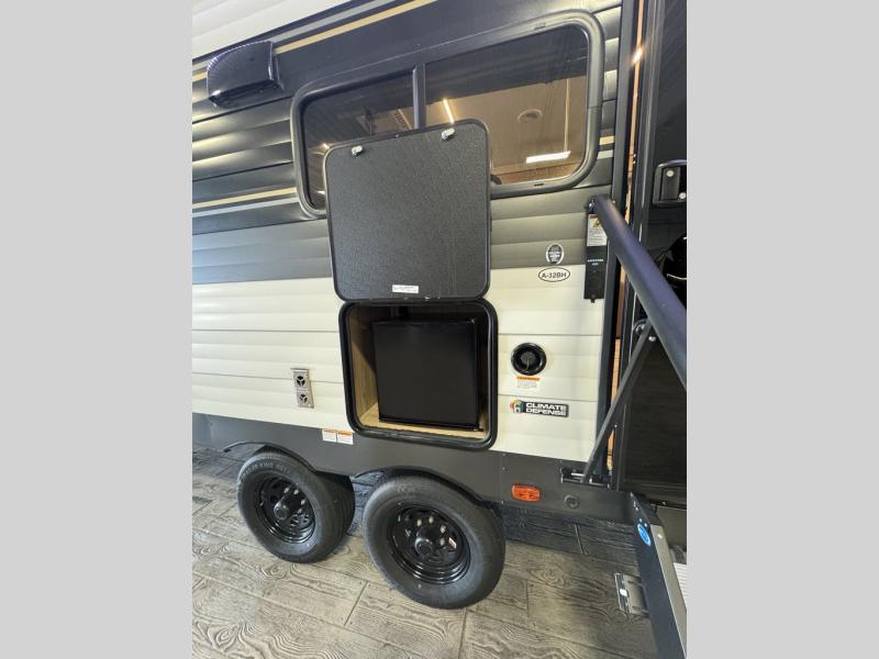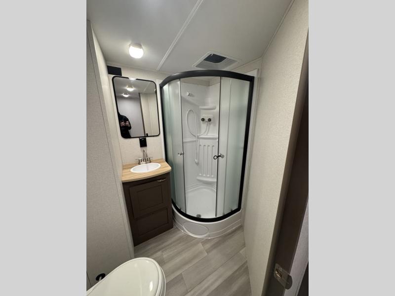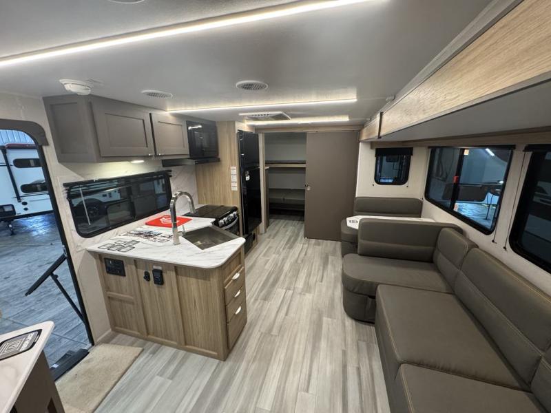 With any Avenir travel trailer by Cruiser RV, you will enjoy affordable luxury at every turn! The smooth corrugated metal exterior and industry leading 3X's full-height cross-members provide a durable foundation, and the Cruiser climate defense heated/enclosed underbelly helps extend your camping season. There is LED batten strip lighting with a dimmer, max storage in the deluxe curated kitchen, and thoughtfully located USB ports and 110V charging outlets to keep your electronics charged. A central control panel lets you easily access your units functions, and the Wi-Fi prep will give you the option to stay connected while you camp. Each model also features a tinted exterior glass door, an on-demand tankless water heater, solid flip-down steps with a telescoping handrail, and a roof mounted 50W solar panel with a 10A charge controller for added convenience.