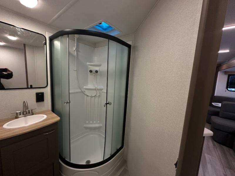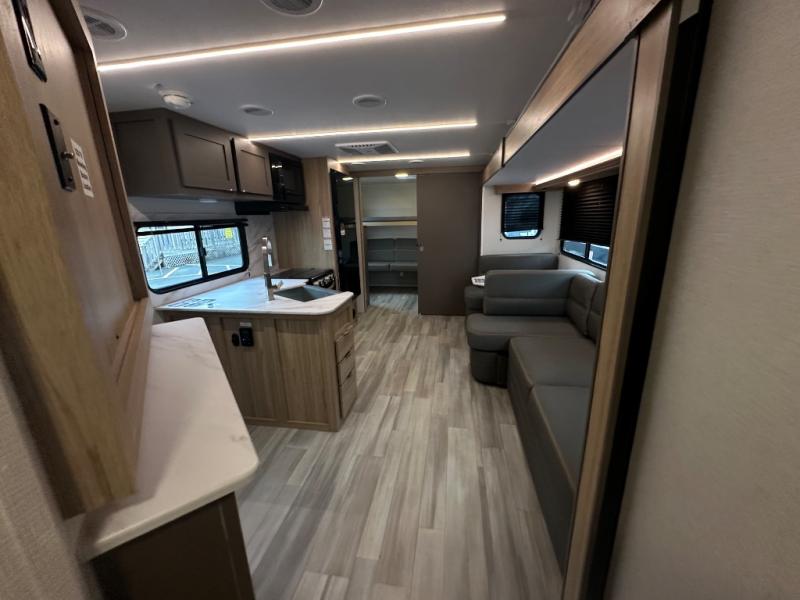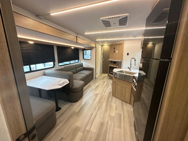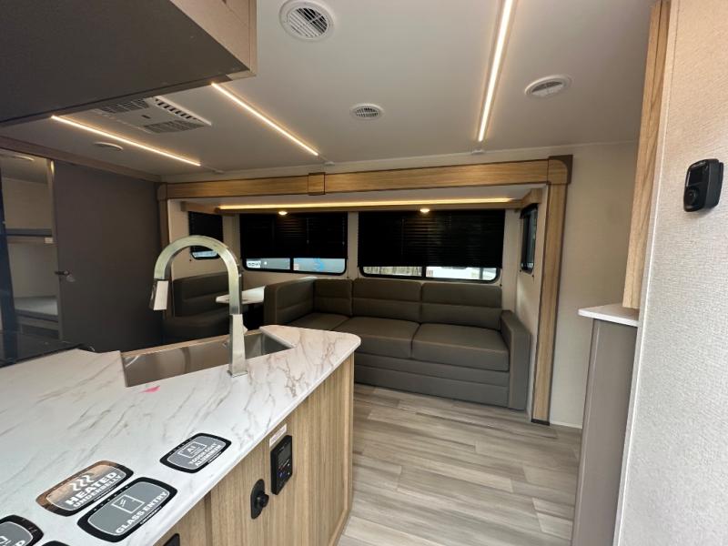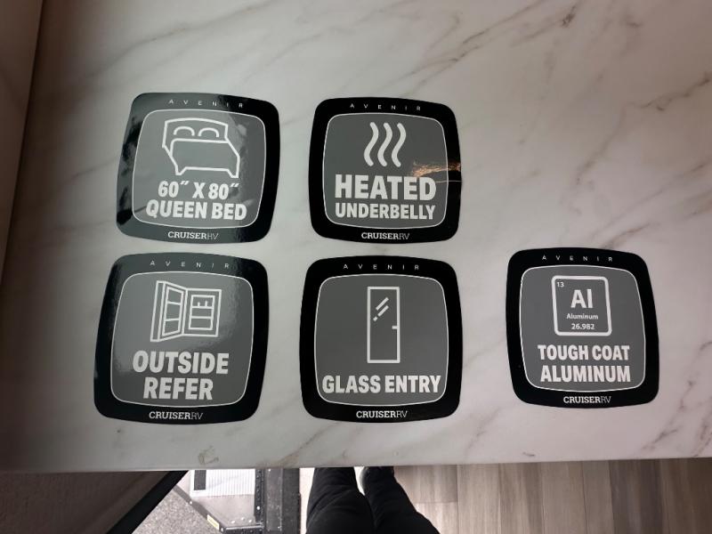With any Avenir travel trailer by Cruiser RV, you will enjoy affordable luxury at every turn! The smooth corrugated metal exterior and industry leading 3X's full-height cross-members provide a durable foundation, and the Cruiser climate defense heated/enclosed underbelly helps extend your camping season. There is LED batten strip lighting with a dimmer, max storage in the deluxe curated kitchen, and thoughtfully located USB ports and 110V charging outlets to keep your electronics charged. A central control panel lets you easily access your units functions, and the Wi-Fi prep will give you the option to stay connected while you camp. Each model also features a tinted exterior glass door, an on-demand tankless water heater, solid flip-down steps with a telescoping handrail, and a roof mounted 50W solar panel with a 10A charge controller for added convenience.