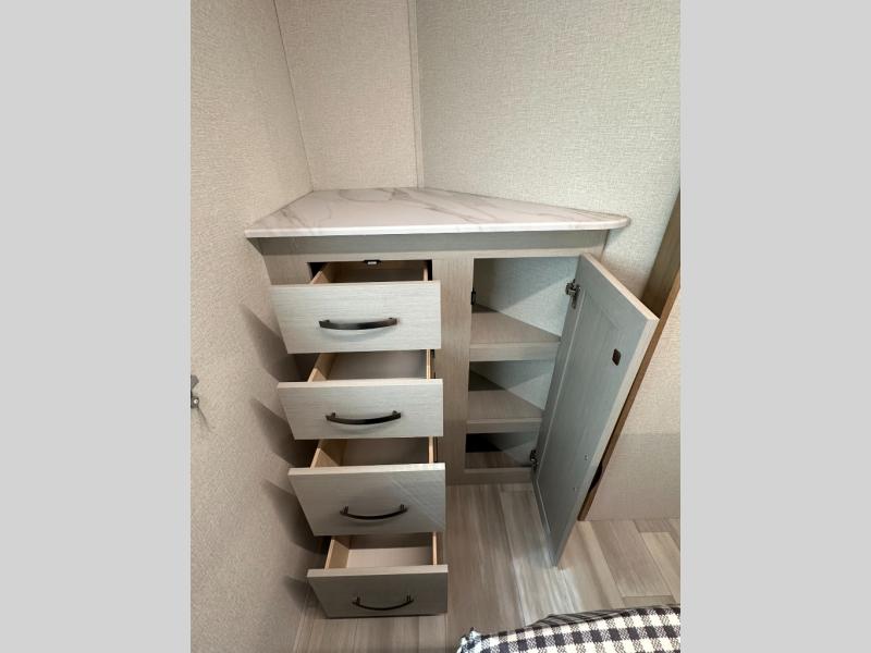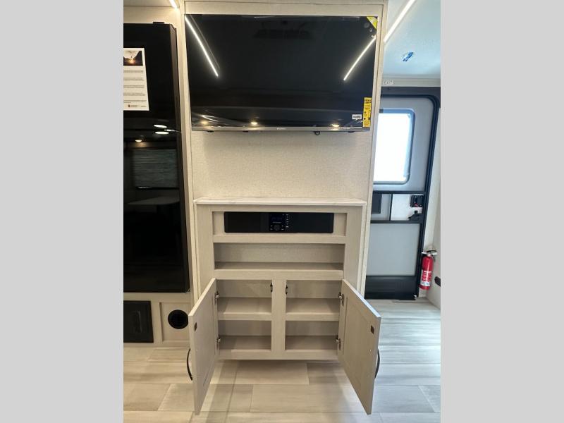 - Power Awning: 20 ft power awning with LED lights. Adds to outdoor shade and usability.
