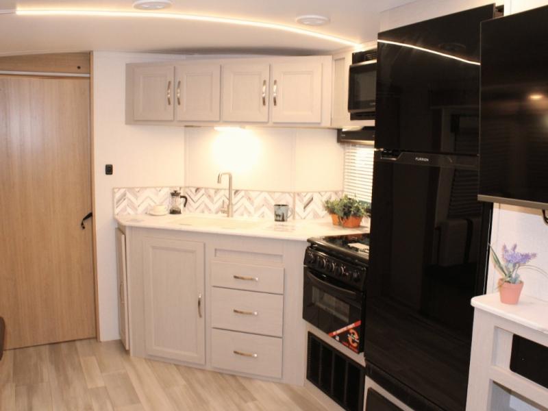 Built for durability and peace of mind, the Cruiser Embrace EL26RB features a painted front cap with LED lights, a one-piece vinyl TPO membrane roof, and a heated and enclosed underbelly to help extend your camping season well beyond summer. Ride smoothly on 15-inch rims and tires mounted on heavy-duty axles and enjoy the sturdy 5/8” tongue and groove plywood flooring for long-lasting strength. Inside, you’ll find seamless countertops, concealed cabinet door hinges, and an LED lighting package that creates a warm, inviting atmosphere—making every moment inside feel like home.