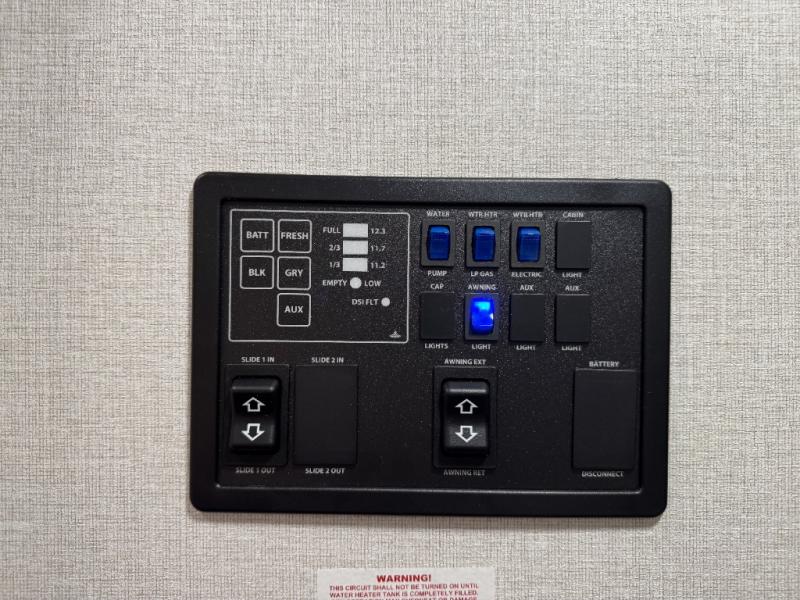 Plan out your summer vacations in this spacious travel trailer for five to six people. The large slide out will allow everyone enough space indoors including the dog who will find plenty of space to nap after a long hike. There is also a full rear bath to get cleaned up in. The chef will have everything they need to prepare a delicious lunch on the three burner cooktop, plus there is a walk-in pantry for dry goods and snacks. You can even entertain outdoors easily with the outdoor kitchen including a griddle. Your crew can dine at the booth dinette, or enjoy some fresh air under the 20' power awning with LED lights. You will feel right at home with a private bedroom up front that includes a queen bed and dual wardrobes for all your clothes!