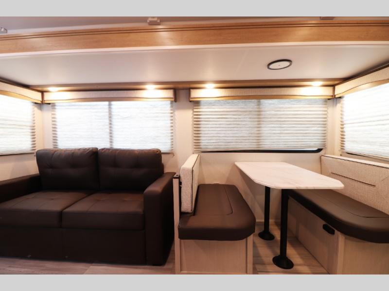 - Spacious Interior: Relax on the tri-fold sofa and enjoy meals in the Store-More dinette with ample storage.