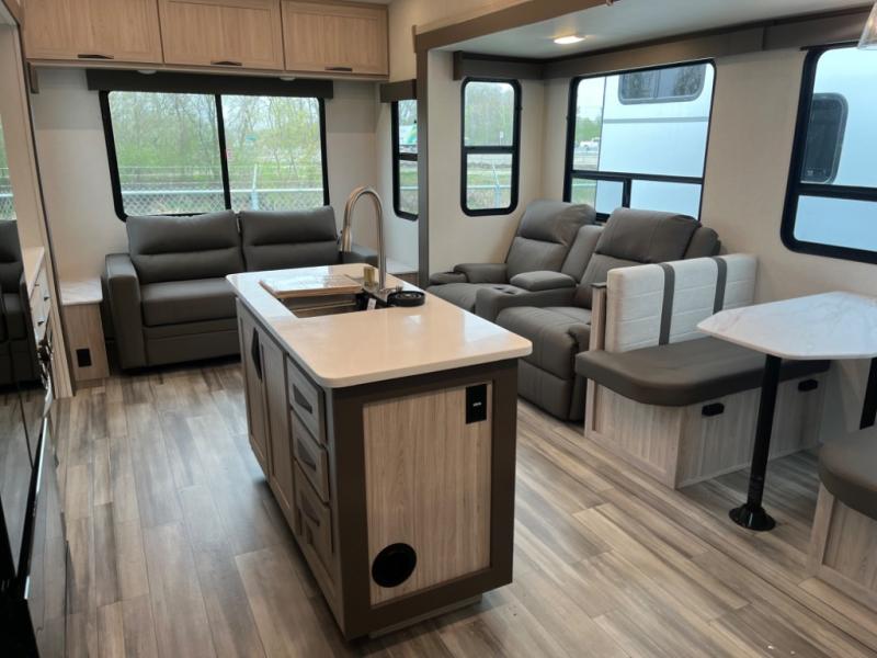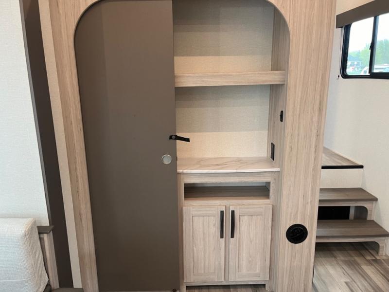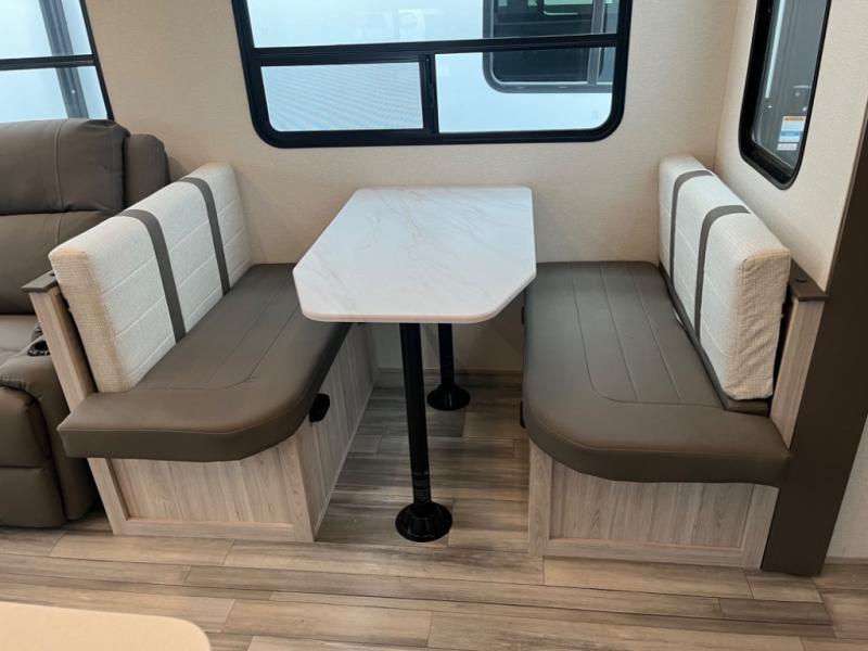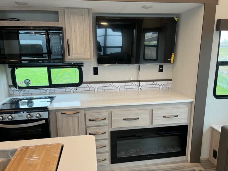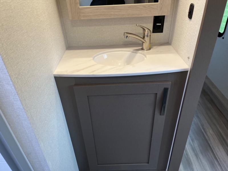 Every one of these Cruiser Essence fifth wheels offer an unrivaled experience on the road! Their sturdy construction consists of Azdel Onboard composite panels, a five-sided aluminum super structure, and tongue and groove plywood throughout, plus a painted fiberglass front cap that will turn heads at the campsite. Their interiors have a keen sense of comfort and convenience with features like a residential workstation sink with waterfall faucet, an air fryer oven, and solid surface kitchen countertops. You will enjoy having hot water quick for your shower in the upgraded shower surround thanks to the on demand water heater. The tinted G20 windows give you privacy from the outdoors while offering you a view of your beautiful scenery. Get your hands on one today!