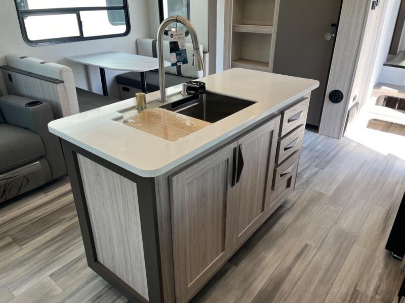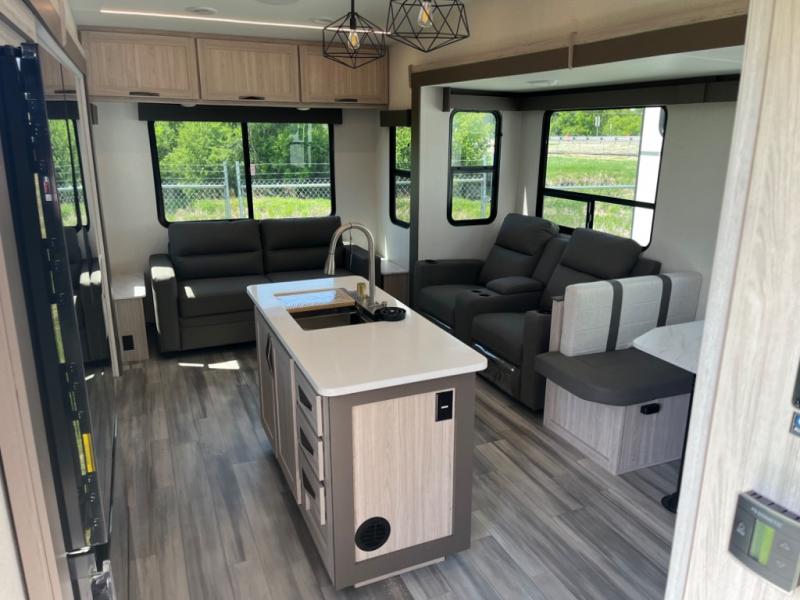 Every one of these Cruiser Essence fifth wheels offer an unrivaled experience on the road! Their sturdy construction consists of Azdel Onboard composite panels, a five-sided aluminum super structure, and tongue and groove plywood throughout, plus a painted fiberglass front cap that will turn heads at the campsite. Their interiors have a keen sense of comfort and convenience with features like a residential workstation sink with waterfall faucet, an air fryer oven, and solid surface kitchen countertops. You will enjoy having hot water quick for your shower in the upgraded shower surround thanks to the on demand water heater. The tinted G20 windows give you privacy from the outdoors while offering you a view of your beautiful scenery. Get your hands on one today!