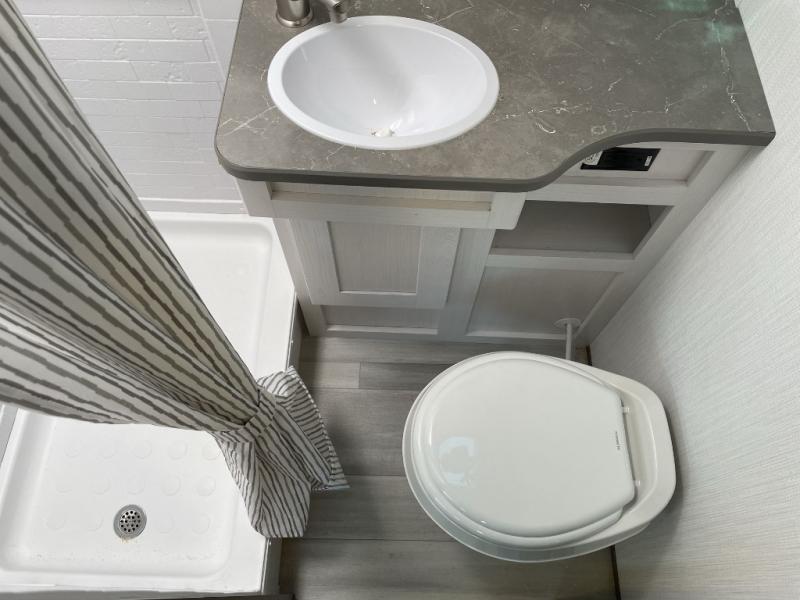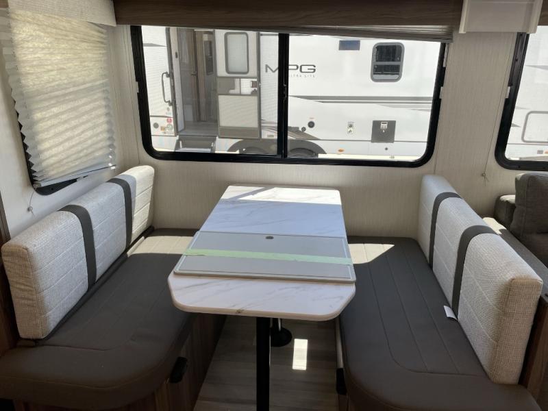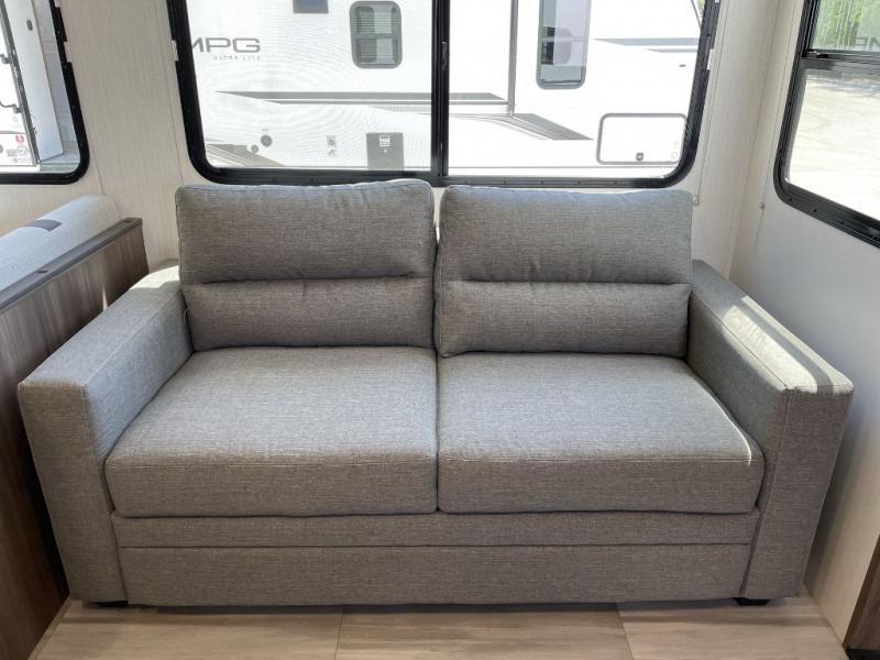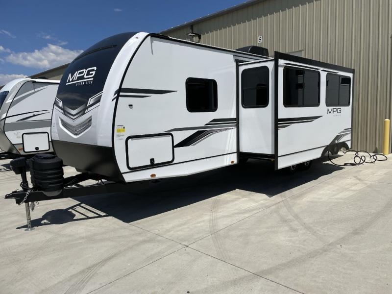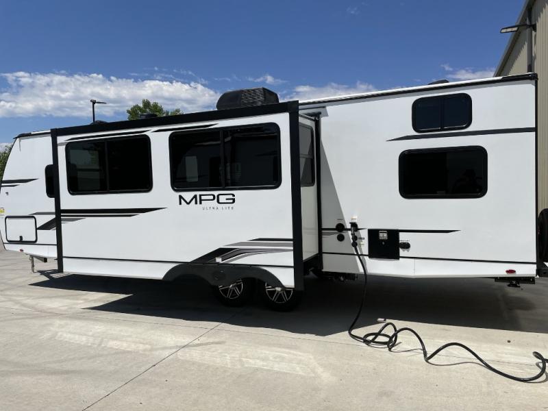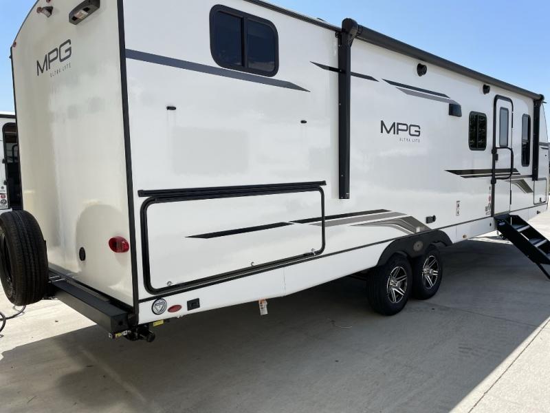 With any MPG travel trailer or toy hauler by Cruiser you will find Azdel composite laminated walls, and a high gloss fiberglass front cap with LED lighting for a sleek look. There are seamless kitchen countertops and plywood flooring that will be easy to clean, plus residential hardwood cabinets with hidden hinges for a more at-home feel. The slam latch baggage doors with magnetic latches will make loading up easier than ever, plus the pass-through storage includes motion sensing LED lights you are sure to appreciate. Each model also includes multiple charging stations with 12v and USB ports, a four speaker soundbar system to listen to your playlists, and a dual ducted A/C to keep you cool during those hot summer months!
