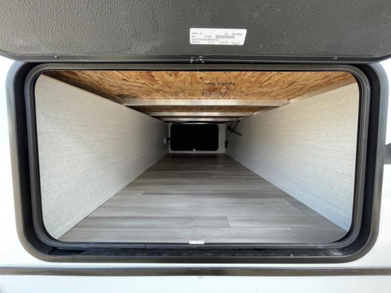 With any MPG travel trailer or toy hauler by Cruiser you will find a 6' 11" barrel roof, Azdel composite laminated walls, and a high gloss fiberglass front cap with LED lighting for a sleek look. There are seamless kitchen countertops and plywood flooring that will be easy to clean, plus residential hardwood cabinets with hidden hinges for a more at-home feel. The slam latch baggage doors with magnetic latches will make loading up easier than ever, plus the pass-through storage includes LED lights you are sure to appreciate. Each model also includes multiple charging stations with 12v and USB ports, a four speaker soundbar system to listen to your playlists, and a dual ducted A/C to keep you cool during those hot summer months!