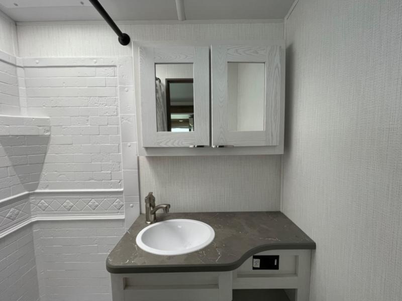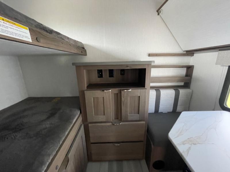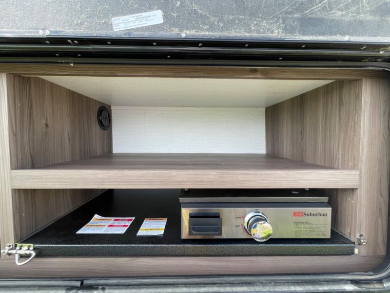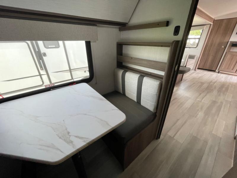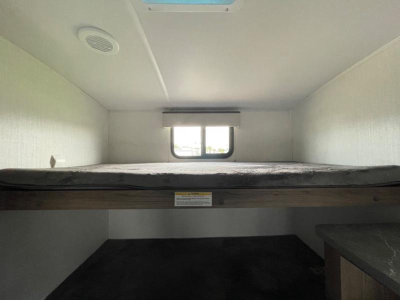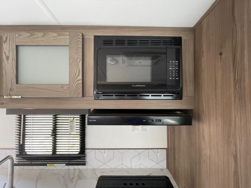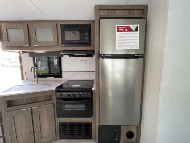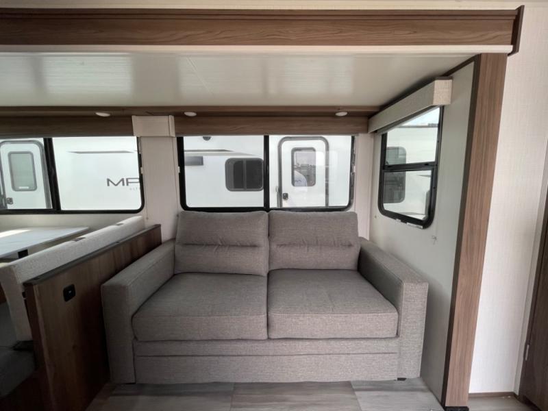 You'll want to take this travel trailer out every other weekend with its sleeping space for eight, dual entry doors, and double slides! Once you arrive at your destination, set up the 19' awning with LED light, then start lunch at the outside kitchen. The kids or your guests can start unpacking their things in the rear private bunkhouse with two bunks and a gaming chairs, bunk steps, plus storage, while your clothing and such will be in the dual wardrobes in the front private bedroom. The inside kitchen includes full amenities, the full bathroom offers the second entry/exit door, and the front bedroom has two entries, one on either side of the entertainment center. Everyone can meet in the main living area that includes a large slide with a booth dinette and a sofa. And you can add the optional LED TV for inside entertainment.