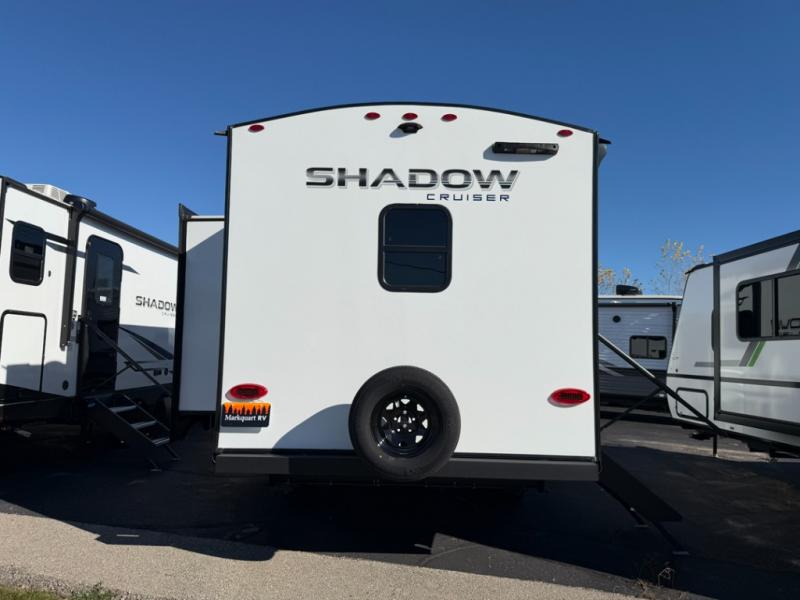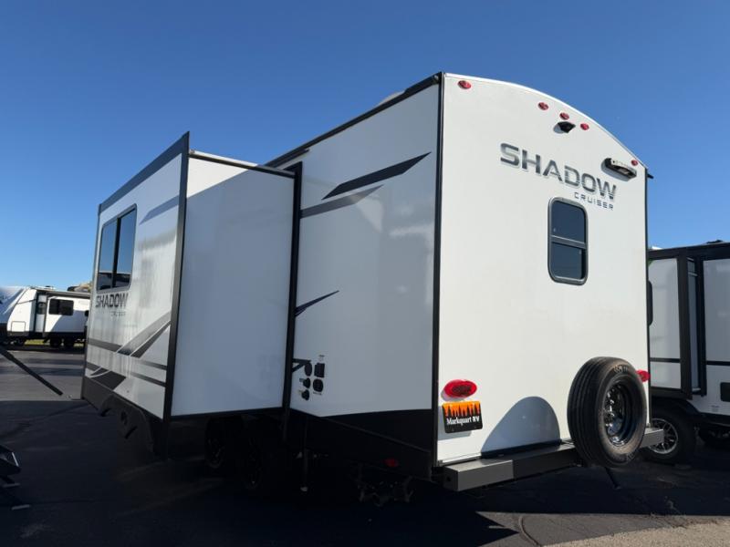 With any Shadow Cruiser travel trailer by Cruiser, you will be getting an exceptional quality at a great value! Some of the top selling features include a painted, molded fiberglass front cap, 5-sided aluminum framing, and Azdel composite laminated sidewalls. There is also a ducted A/C and high BTU ducted furnace to keep you comfortable year around, and the power stabilizer jacks will make set-up a breeze. Inside, you'll appreciate the multiple 110V and USB outlets to keep your electronics charged up, and the seamless edge countertops are ultra durable. Head outdoors to find XL baggage doors with slam latches and magnet catches, exterior speakers, a spray port, and a rain-away barreled roof to help combat water damage.