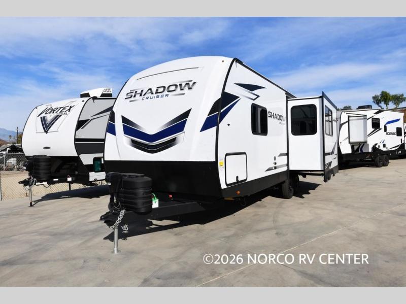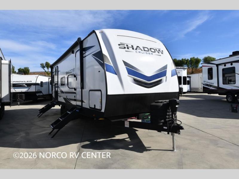 With any Shadow Cruiser travel trailer by Cruiser, you will be getting an exceptional quality at a great value! Some of the top selling features include a painted, molded fiberglass front cap, 5-sided aluminum framing, and Azdel composite laminated sidewalls. There is also a ducted A/C and high BTU ducted furnace to keep you comfortable year around, and the power stabilizer jacks will make set-up a breeze. Inside, you'll appreciate the multiple 110V and USB outlets to keep your electronics charged up, and the seamless edge countertops are ultra durable. Head outdoors to find XL baggage doors with slam latches and magnet catches, exterior speakers, a spray port, and a rain-away barreled roof to help combat water damage.