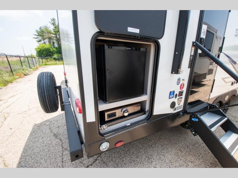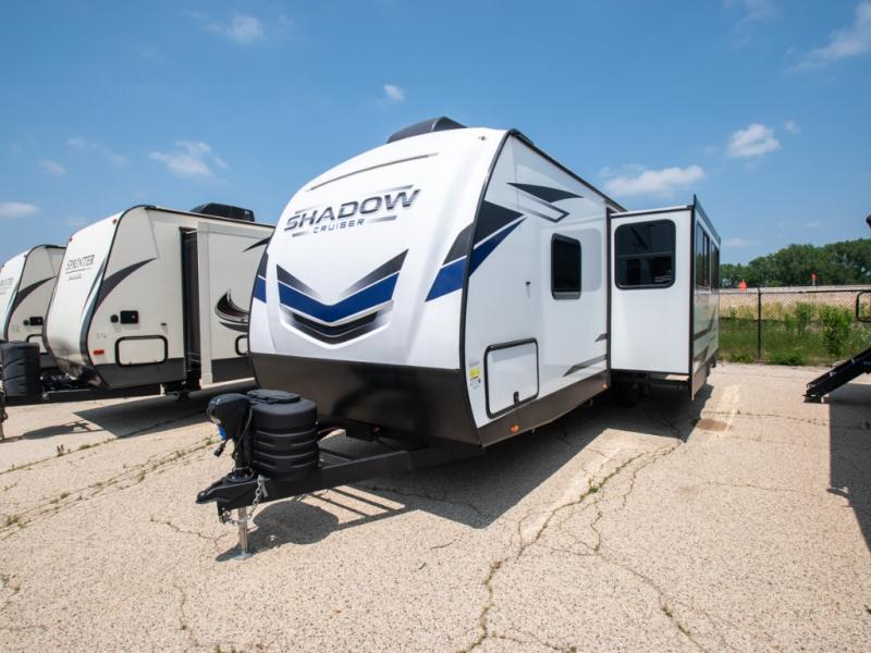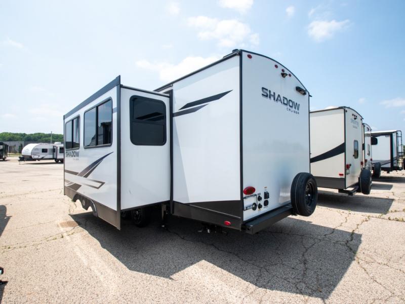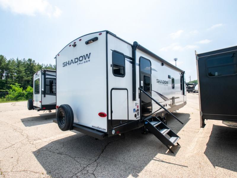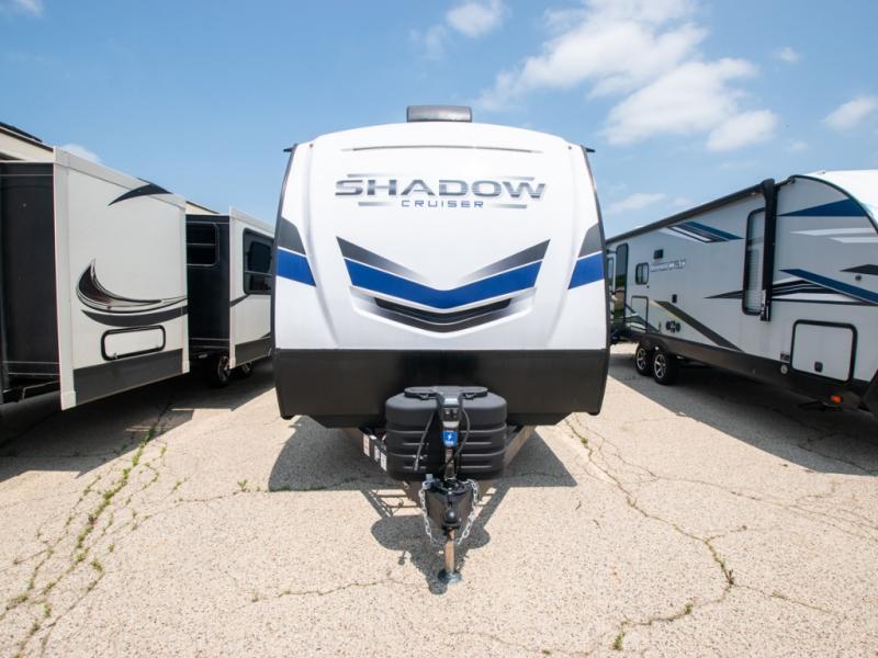 With any Shadow Cruiser travel trailer by Cruiser, you will be getting an exceptional quality at a great value! Some of the top selling features include a painted, molded fiberglass front cap, 5-sided aluminum framing, and Azdel composite laminated sidewalls. There is also a ducted A/C and high BTU ducted furnace to keep you comfortable year around, and the power stabilizer jacks will make set-up a breeze. Inside, you'll appreciate the multiple 110V and USB outlets to keep your electronics charged up, and the seamless edge countertops are ultra durable. Head outdoors to find XL baggage doors with slam latches and magnet catches, exterior speakers, a spray port, and a rain-away barreled roof to help combat water damage.