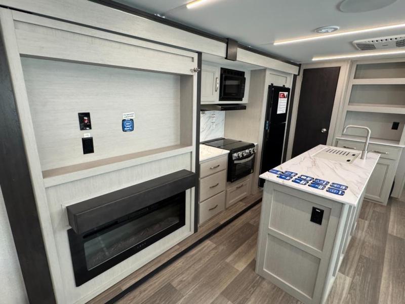 - Interior Comfort Package: Fireplace(Varies By Model), Seamless Edge Countertops, LED Batton Strip lighting w/Dimmer,