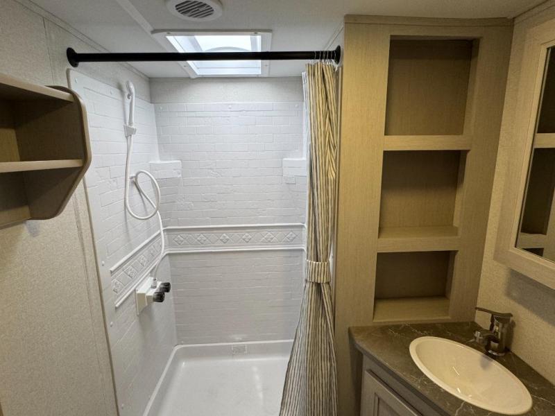 - Floor Slideouts, Shower Curtain or Radius Shower Door, Skylight Over Shower or Tub, Stereo with Bluetooth, Residential