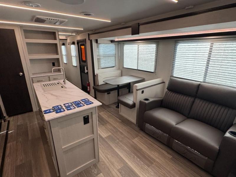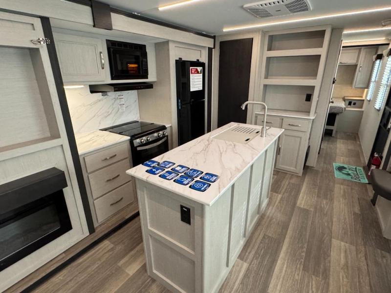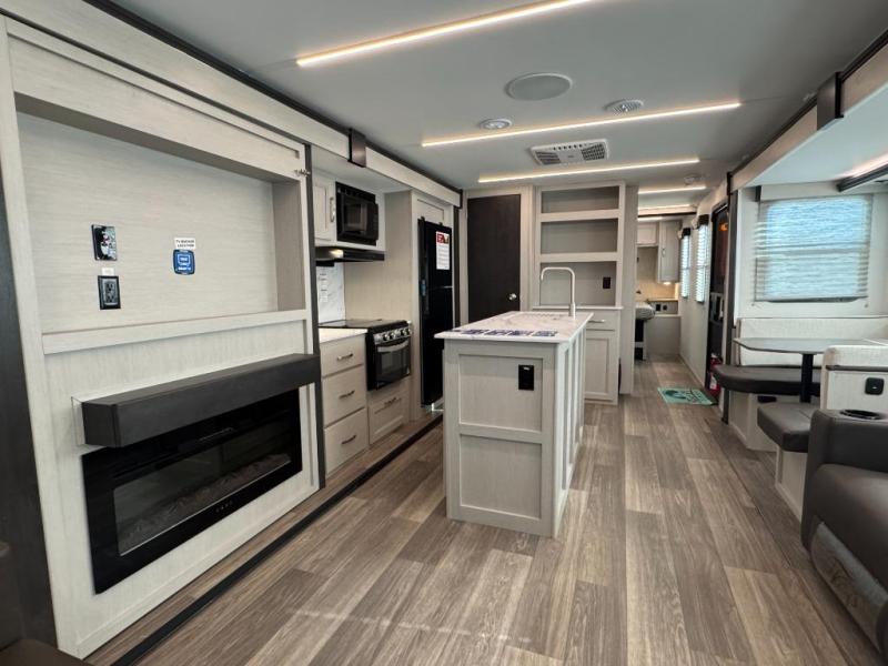 - Interior Comfort Package: Fireplace(Varies By Model), Seamless Edge Countertops, LED Batton Strip lighting w/Dimmer,