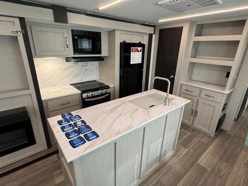 - Interior Comfort Package: Fireplace(Varies By Model), Seamless Edge Countertops, LED Batton Strip lighting w/Dimmer,