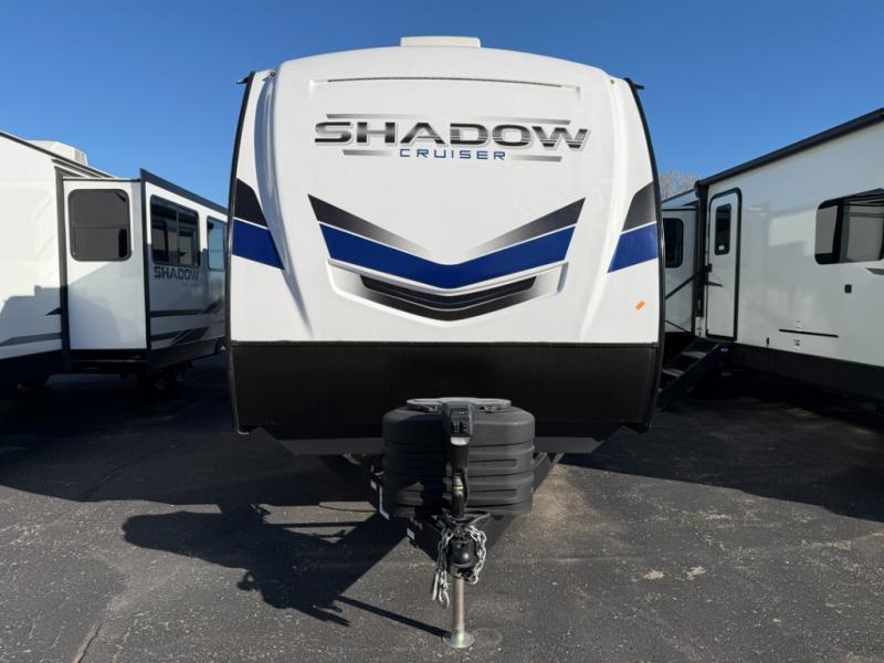 With any Shadow Cruiser travel trailer by Cruiser, you will be getting an exceptional quality at a great value! Some of the top selling features include a painted, molded fiberglass front cap, 5-sided aluminum framing, and Azdel composite laminated sidewalls. There is also a ducted A/C and high BTU ducted furnace to keep you comfortable year around, and the power stabilizer jacks will make set-up a breeze. Inside, you'll appreciate the multiple 110V and USB outlets to keep your electronics charged up, and the seamless edge countertops are ultra durable. Head outdoors to find XL baggage doors with slam latches and magnet catches, exterior speakers, a spray port, and a rain-away barreled roof to help combat water damage.