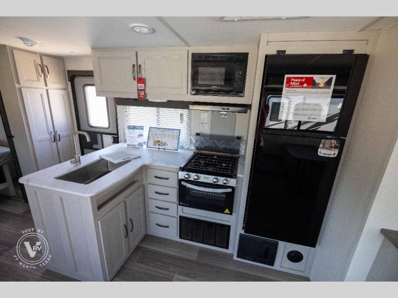 With any Shadow Cruiser travel trailer by Cruiser, you will be getting an exceptional quality at a great value! Some of the top selling features include a painted, molded fiberglass front cap, 5-sided aluminum framing, and Azdel composite laminated sidewalls. There is also a ducted A/C and high BTU ducted furnace to keep you comfortable year around, and the power stabilizer jacks will make set-up a breeze. Inside, you'll appreciate the multiple 110V and USB outlets to keep your electronics charged up, and the seamless edge countertops are ultra durable. Head outdoors to find XL baggage doors with slam latches and magnet catches, exterior speakers, a spray port, and a rain-away barreled roof to help combat water damage.