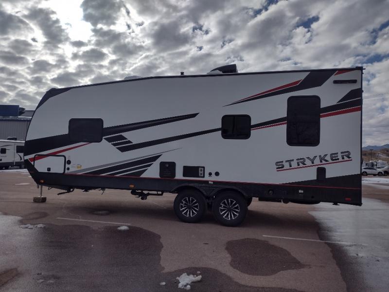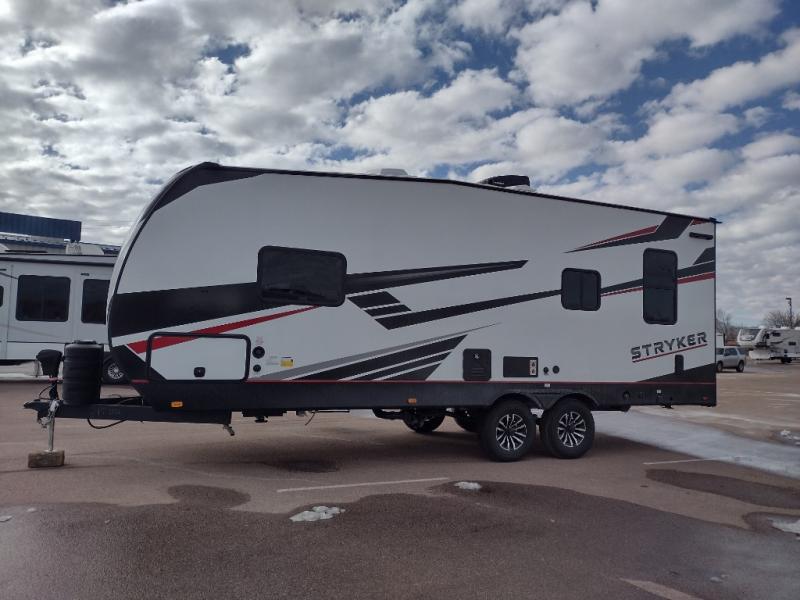 Each Stryker toy hauler travel trailer by Cruiser starts with a powder coated structural steel I-beam frame, Azdel composite laminated sidewalls, and a 102" wide body, perfect for your side-by-side, dirt bikes, or kayaks! The EZ flex rubberized suspension provides smooth towing on tougher roads, and the painted molded fiberglass front cap not only looks sleek, but provides better protection. Inside, you'll find barreled ceilings up to 98" in height, solid surface kitchen cabinets, and numerous USB ports and 110V outlets. There's so much more to love about the Stryker toy haulers, like the premium sound system, large windows, tons of storage space, and the list goes on!