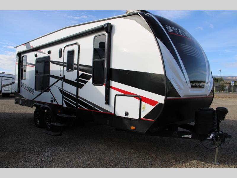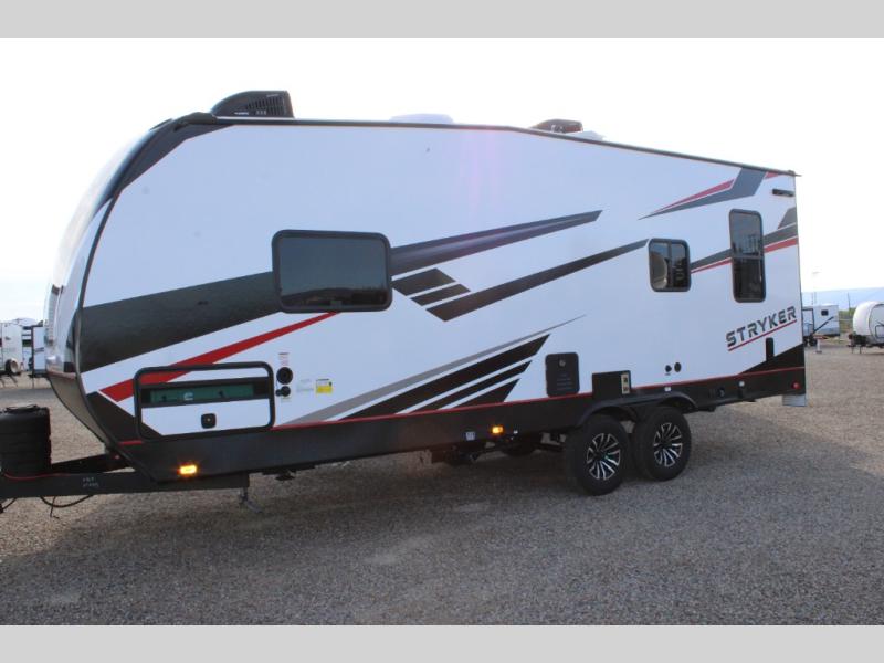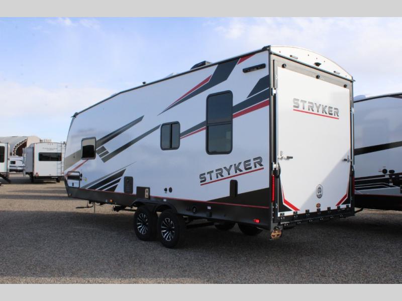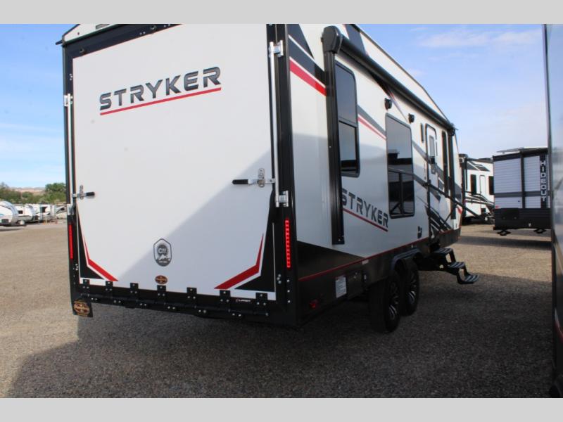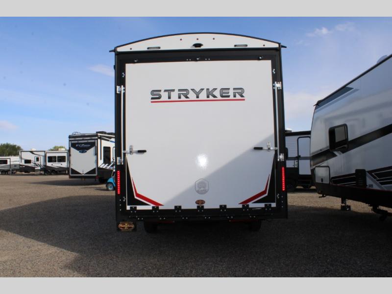 Each Stryker toy hauler travel trailer by Cruiser starts with a powder coated structural steel I-beam frame, Azdel composite laminated sidewalls, and a 102" wide body, perfect for your side-by-side, dirt bikes, or kayaks! The EZ flex rubberized suspension provides smooth towing on tougher roads, and the painted molded fiberglass front cap not only looks sleek, but provides better protection. Inside, you'll find barreled ceilings up to 98" in height, solid surface kitchen cabinets, and numerous USB ports and 110V outlets. There's so much more to love about the Stryker toy haulers, like the premium sound system, large windows, tons of storage space, and the list goes on!