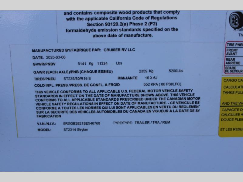 New 2025 Cruiser Stryker ST2314 Toy Hauler Travel Trailer