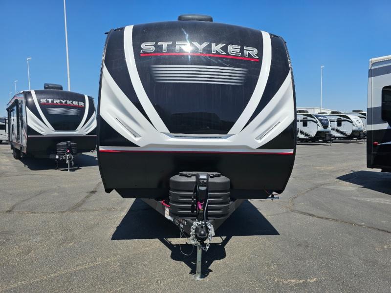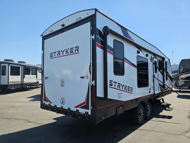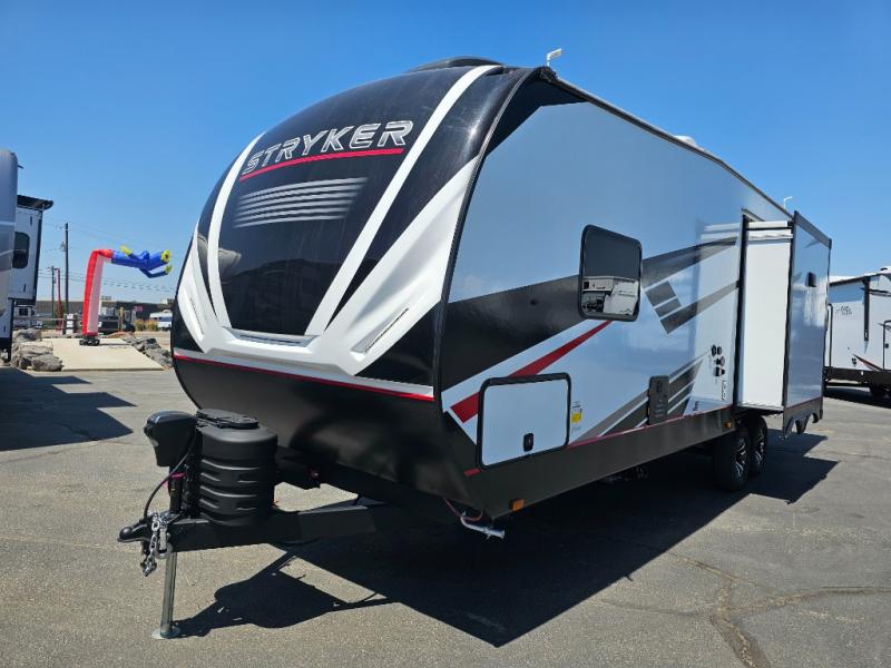 Each Stryker toy hauler travel trailer by Cruiser starts with a powder coated structural steel I-beam frame, Azdel composite laminated sidewalls, and a 102" wide body, perfect for your side-by-side, dirt bikes, or kayaks! The EZ flex rubberized suspension provides smooth towing on tougher roads, and the painted molded fiberglass front cap not only looks sleek, but provides better protection. Inside, you'll find barreled ceilings up to 98" in height, solid surface kitchen cabinets, and numerous USB ports and 110V outlets. There's so much more to love about the Stryker toy haulers, like the premium sound system, large windows, tons of storage space, and the list goes on!