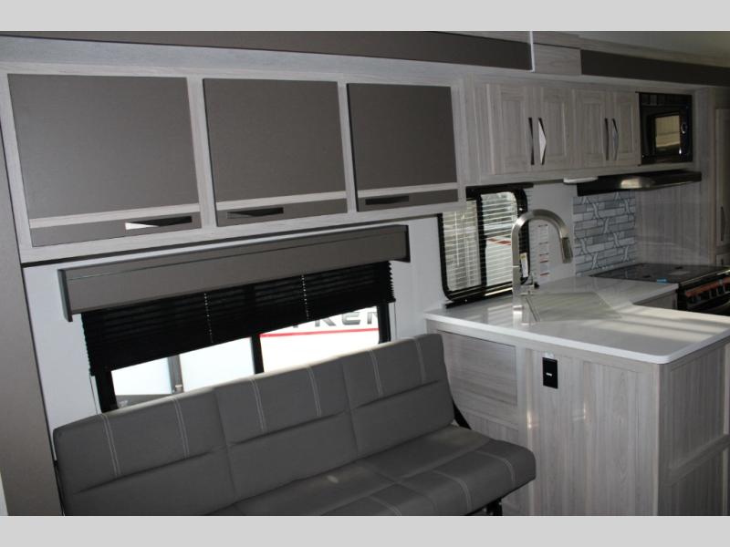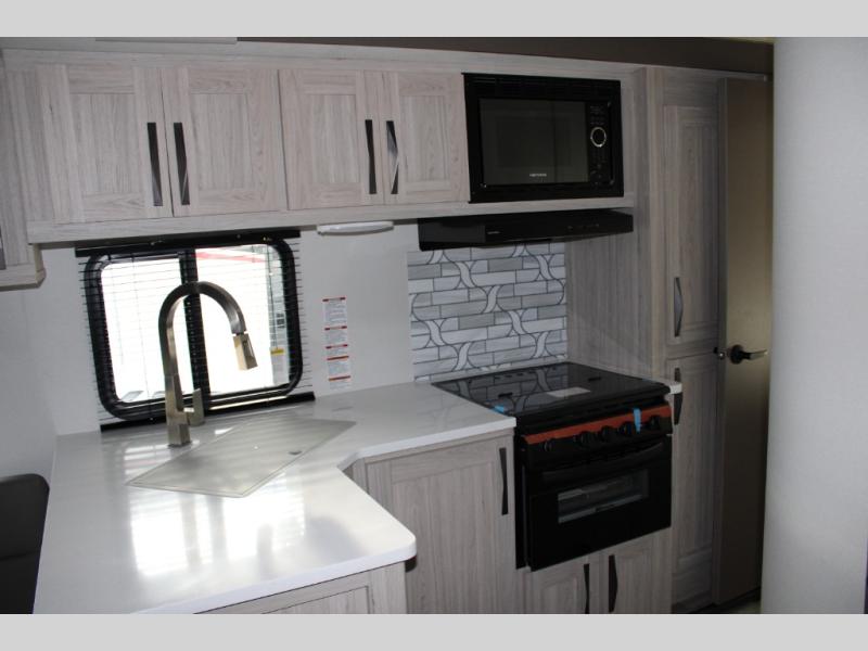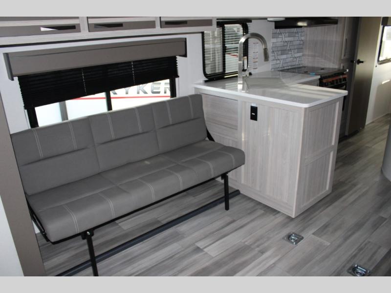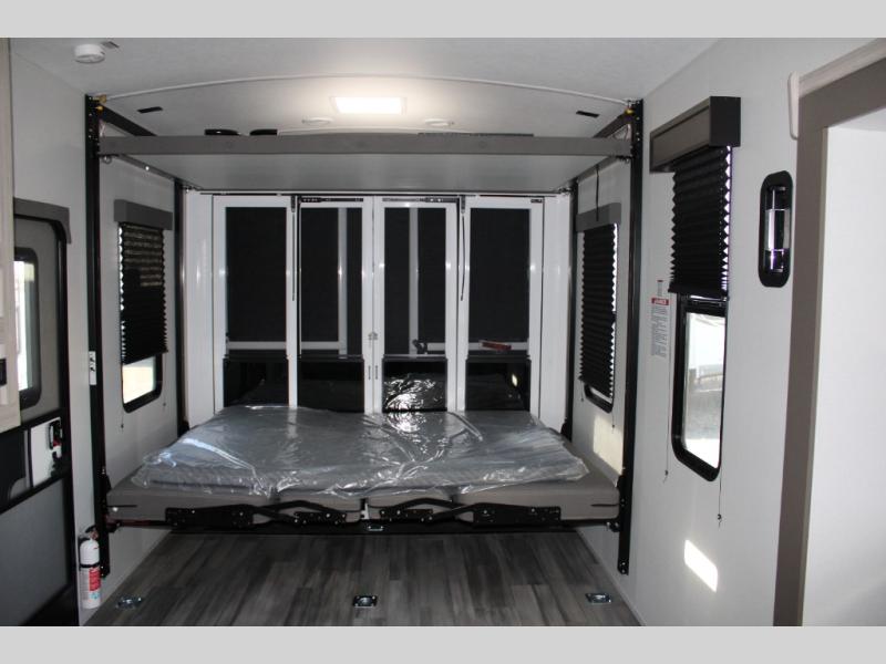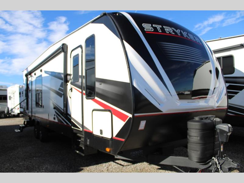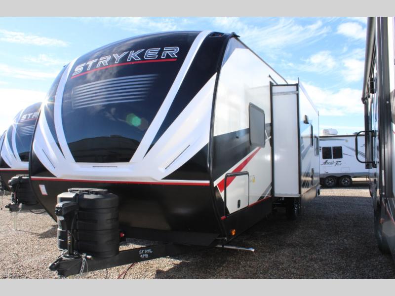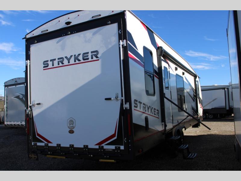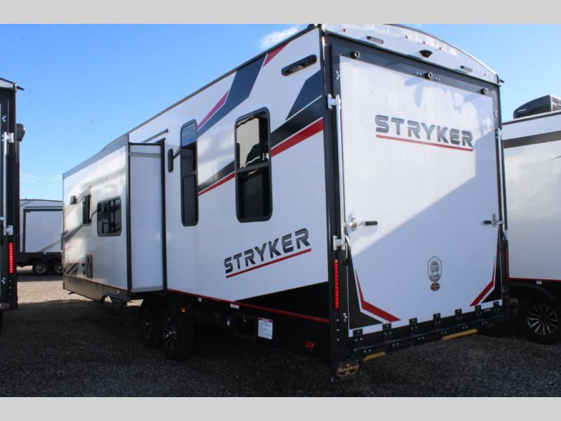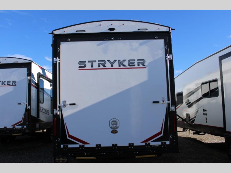 Each Stryker toy hauler travel trailer by Cruiser starts with a powder coated structural steel I-beam frame, Azdel composite laminated sidewalls, and a 102" wide body, perfect for your side-by-side, dirt bikes, or kayaks! The EZ flex rubberized suspension provides smooth towing on tougher roads, and the painted molded fiberglass front cap not only looks sleek, but provides better protection. Inside, you'll find barreled ceilings up to 98" in height, solid surface kitchen cabinets, and numerous USB ports and 110V outlets. There's so much more to love about the Stryker toy haulers, like the premium sound system, large windows, tons of storage space, and the list goes on!