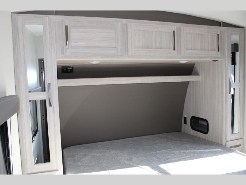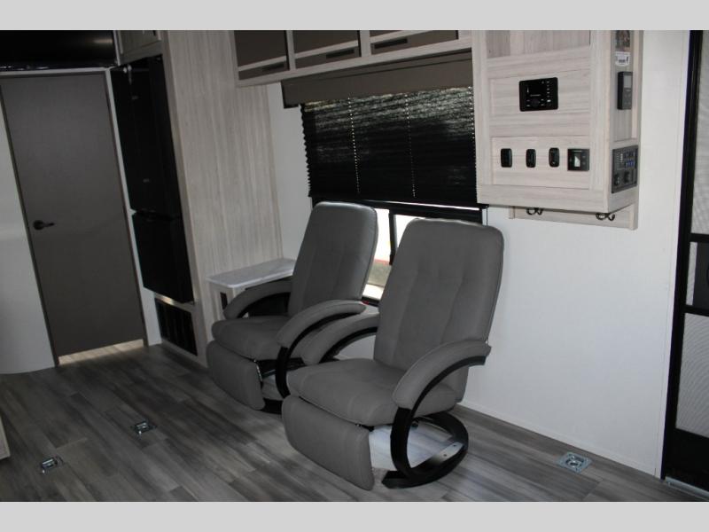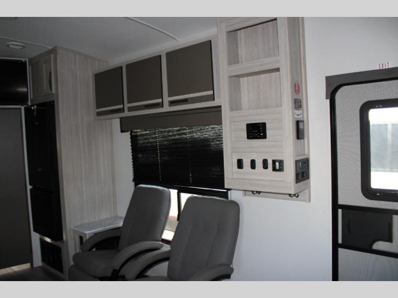 You can't go wrong with this dual entry toy hauler in tow! Once you arrive at the campground, fill up the bikes using the convenient 30 gallon fuel station, then head out on a trail or two! There is a dual entry bath on board that will allow you to clean up before heading to the kitchen to start dinner. You will love the large slide out that will provide more space when cooking, and there is a sofa with a table to dine at. You may just want to kick back on the dual lounge chairs before starting the dishes. Sleeping space can be found on the king bed in the front bedroom, or on the opposing sofas and power queen bed in the garage!