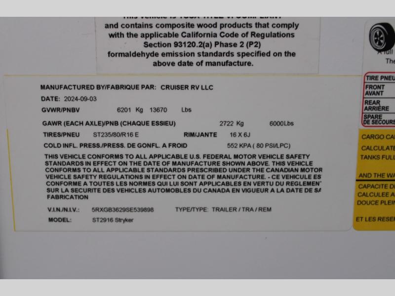New 2025 Cruiser Stryker ST2916 Toy Hauler Travel Trailer