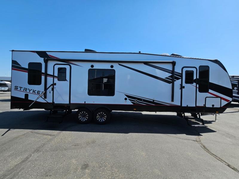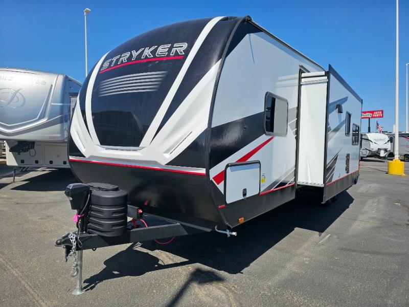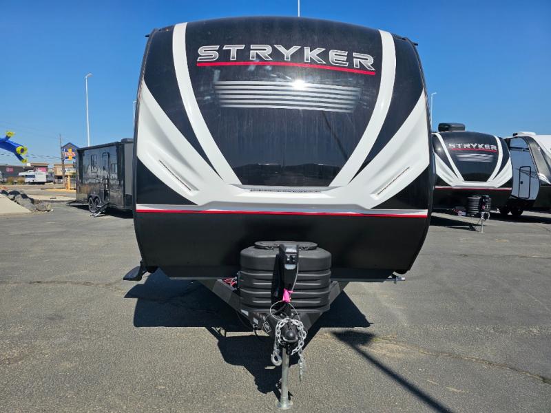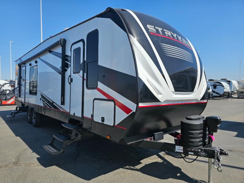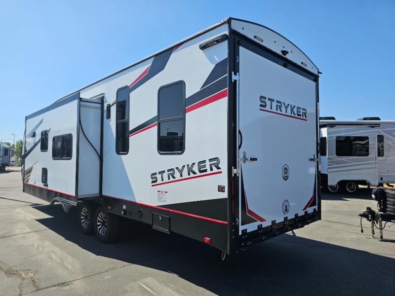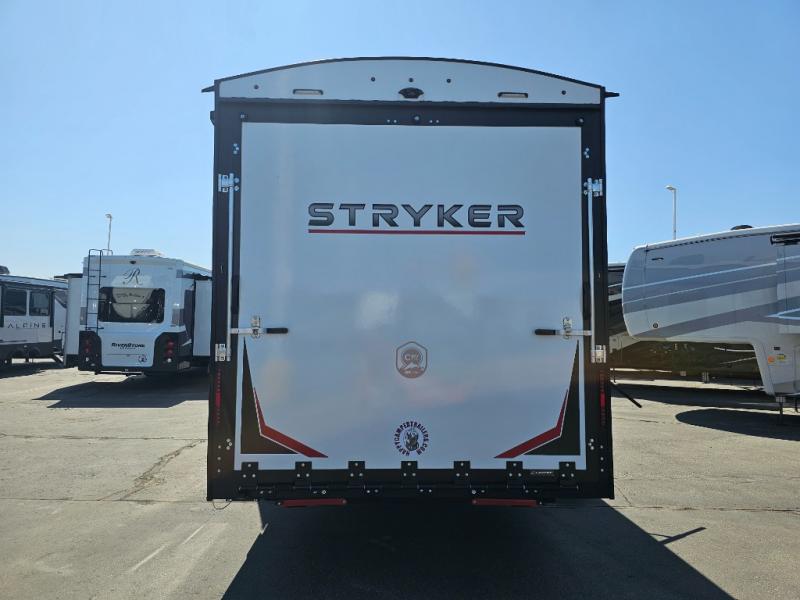 Each Stryker toy hauler travel trailer by Cruiser starts with a powder coated structural steel I-beam frame, Azdel composite laminated sidewalls, and a 102" wide body, perfect for your side-by-side, dirt bikes, or kayaks! The EZ flex rubberized suspension provides smooth towing on tougher roads, and the painted molded fiberglass front cap not only looks sleek, but provides better protection. Inside, you'll find barreled ceilings up to 98" in height, solid surface kitchen cabinets, and numerous USB ports and 110V outlets. There's so much more to love about the Stryker toy haulers, like the premium sound system, large windows, tons of storage space, and the list goes on!