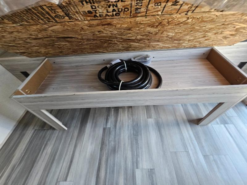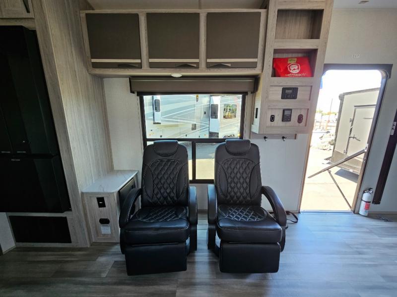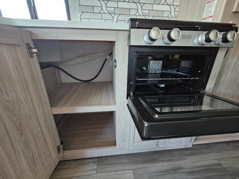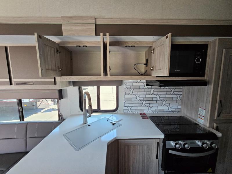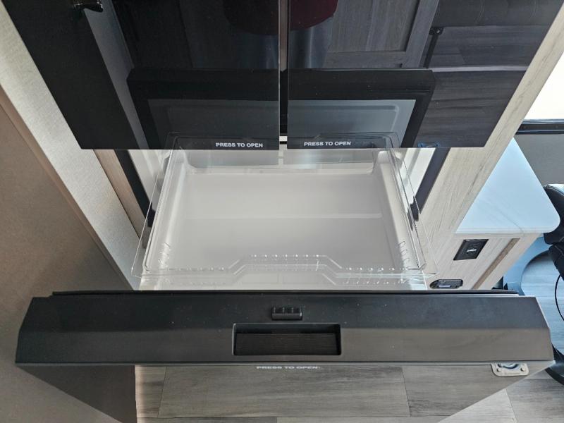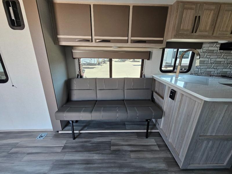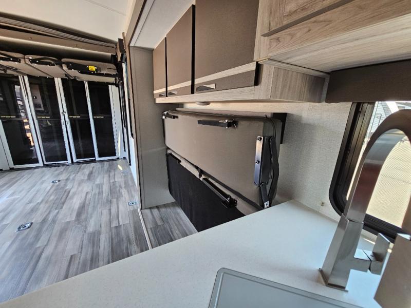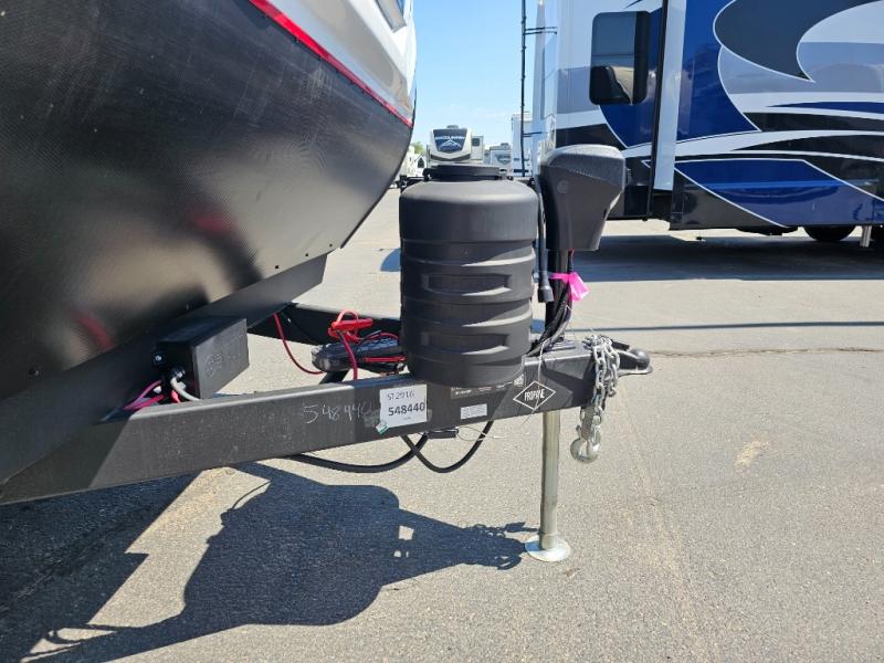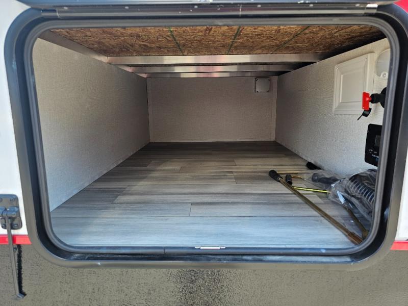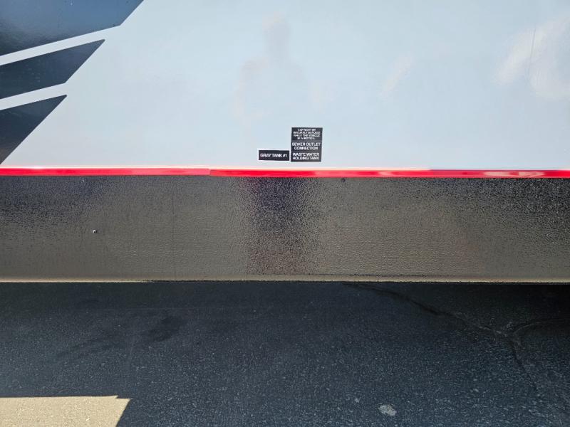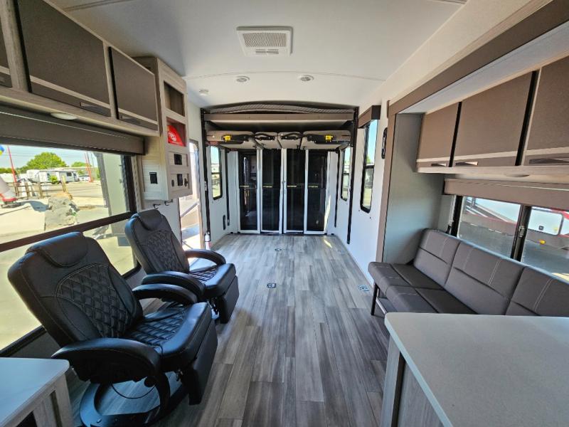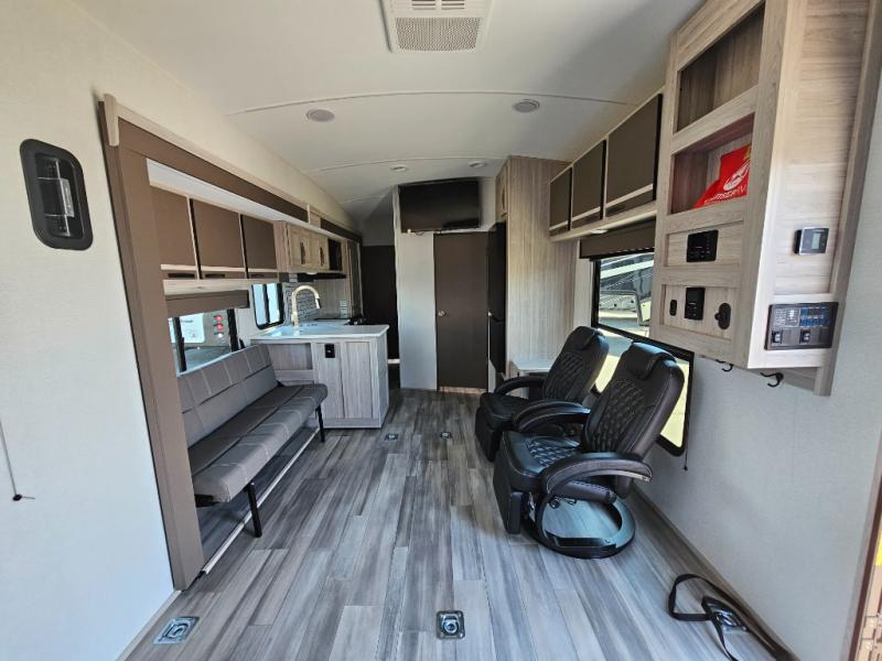 You can't go wrong with this dual entry toy hauler in tow! Once you arrive at the campground, fill up the bikes using the convenient 30 gallon fuel station, then head out on a trail or two! There is a dual entry bath on board that will allow you to clean up before heading to the kitchen to start dinner. You will love the large slide out that will provide more space when cooking, and there is a sofa with a table to dine at. You may just want to kick back on the dual lounge chairs before starting the dishes. Sleeping space can be found on the king bed in the front bedroom, or on the opposing sofas and power queen bed in the garage!