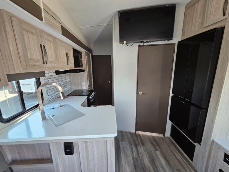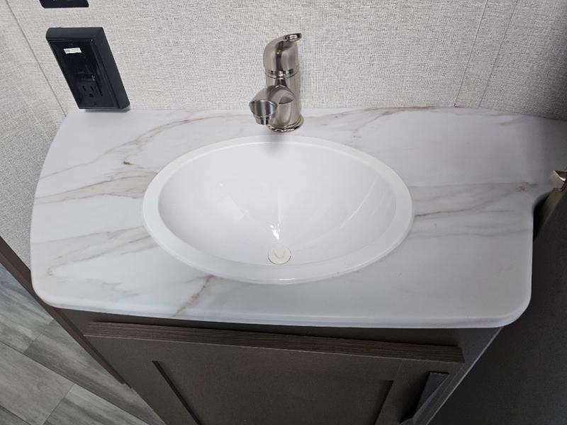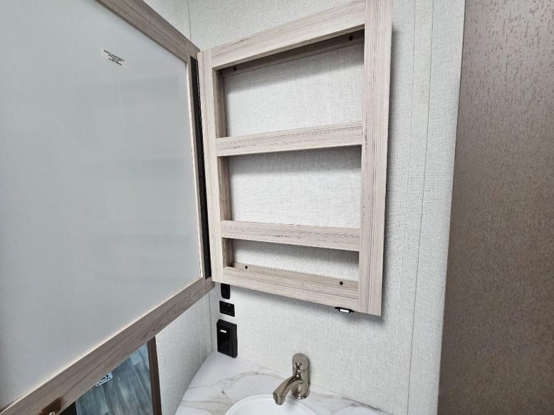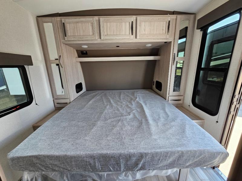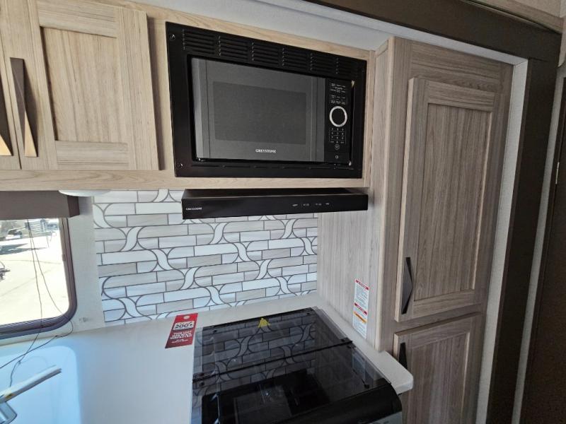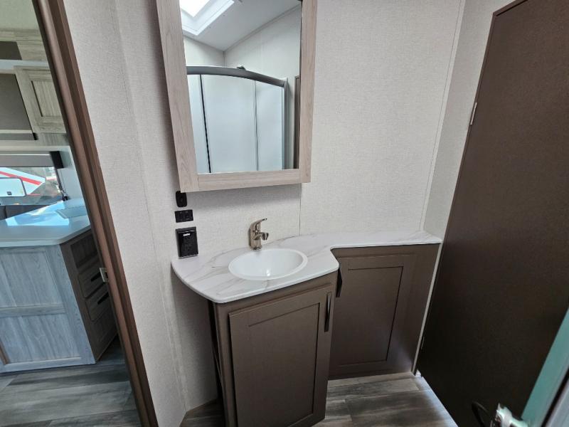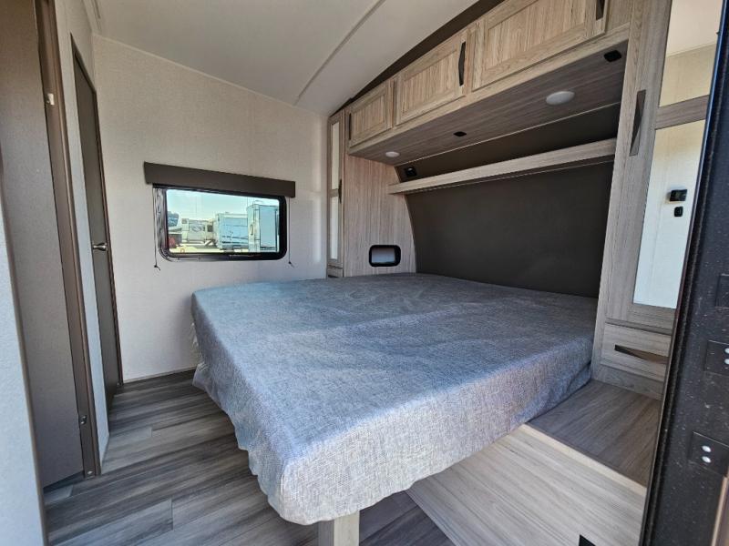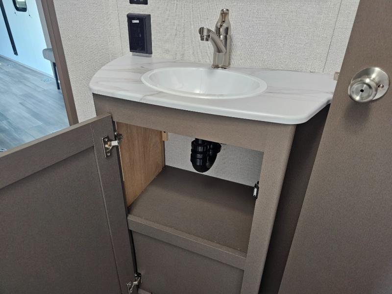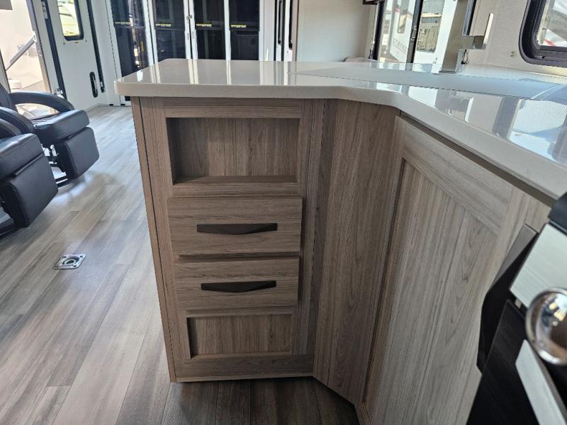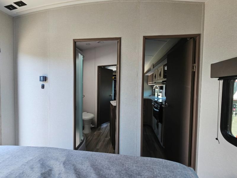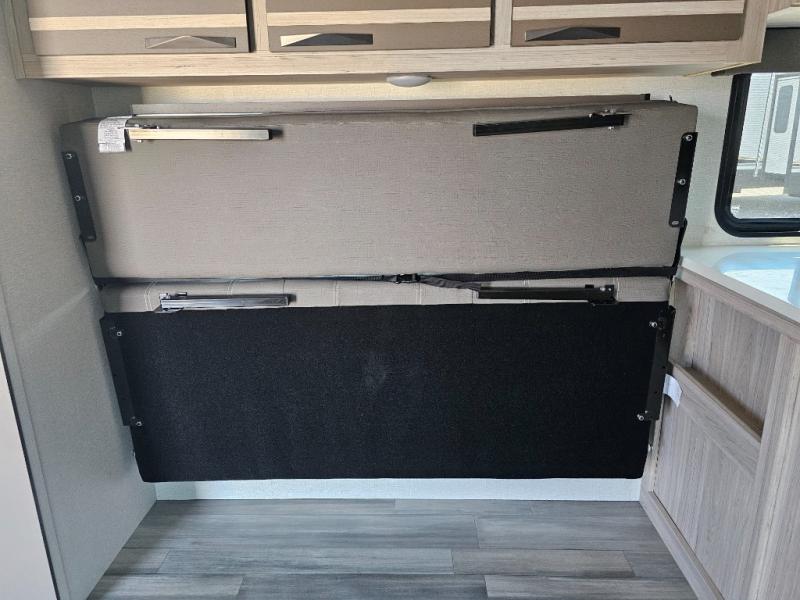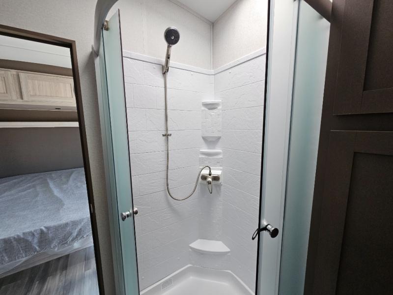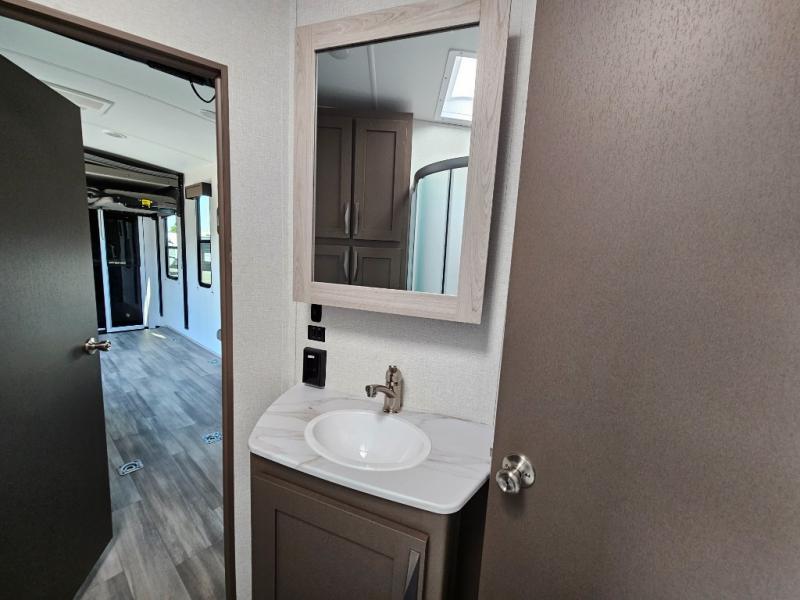 You can't go wrong with this dual entry toy hauler in tow! Once you arrive at the campground, fill up the bikes using the convenient 30 gallon fuel station, then head out on a trail or two! There is a dual entry bath on board that will allow you to clean up before heading to the kitchen to start dinner. You will love the large slide out that will provide more space when cooking, and there is a sofa with a table to dine at. You may just want to kick back on the dual lounge chairs before starting the dishes. Sleeping space can be found on the king bed in the front bedroom, or on the opposing sofas and power queen bed in the garage!