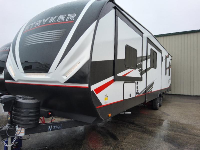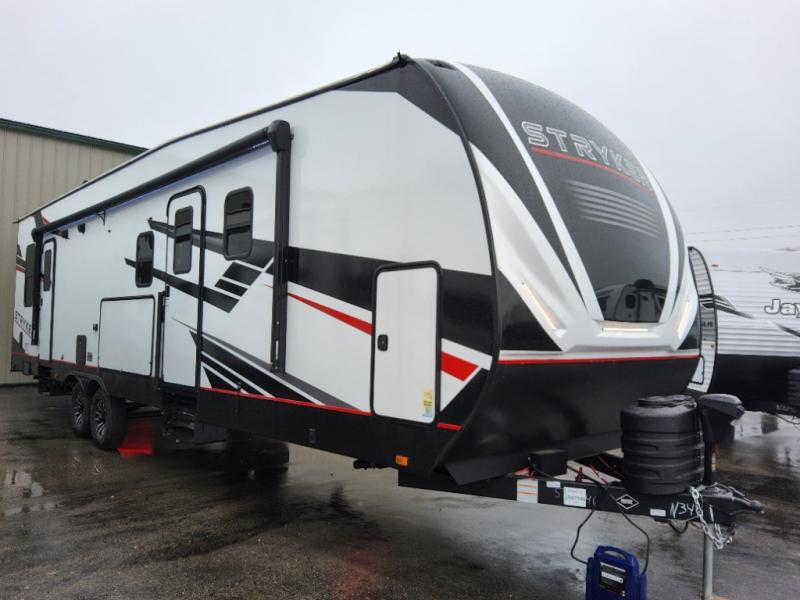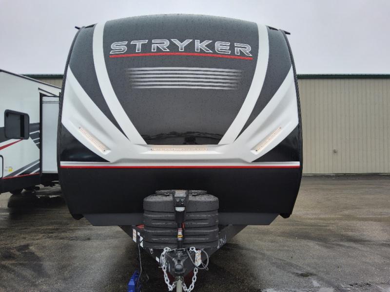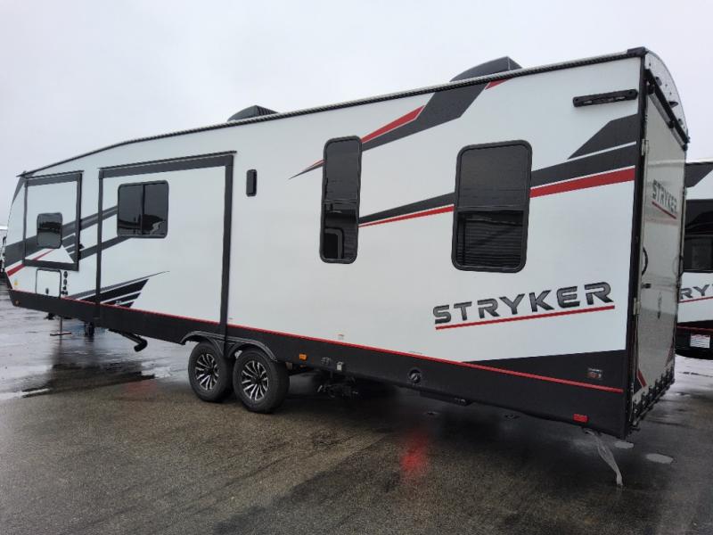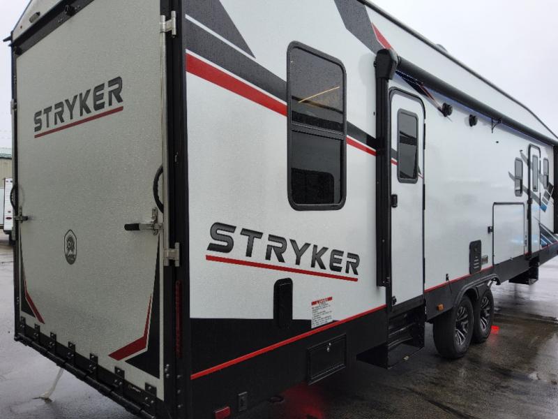 Each Stryker toy hauler travel trailer by Cruiser starts with a powder coated structural steel I-beam frame, Azdel composite laminated sidewalls, and a 102" wide body, perfect for your side-by-side, dirt bikes, or kayaks! The EZ flex rubberized suspension provides smooth towing on tougher roads, and the painted molded fiberglass front cap not only looks sleek, but provides better protection. Inside, you'll find barreled ceilings up to 98" in height, solid surface kitchen cabinets, and numerous USB ports and 110V outlets. There's so much more to love about the Stryker toy haulers, like the premium sound system, large windows, tons of storage space, and the list goes on!