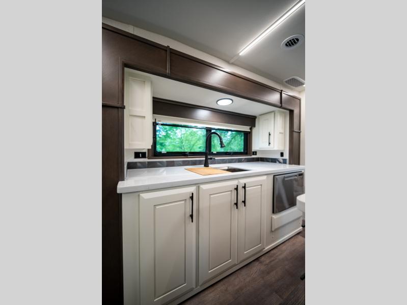 With any Mobile Suites fifth wheel by DRV Luxury Suites you will enjoy durable construction, beautiful interiors, and tons of storage spaces. Each model includes hassle-free conveniences, like the SeeLevel tank monitoring, the fully ducted A/C system with cold air return, solar prep, and much more! The interior is packed with luxury features, such as custom hardwood wardrobe doors, LED ceiling lights with dimmer switches, crown molding throughout, and custom hand laid backsplash. You may spend all your time relaxing indoors, but don't forget to check out the exterior. A power awning with LED lights, extra thick compartment doors with gas struts, and a custom painted exterior with clear coat are just a few features that are sure to be a deal breaker! You might even want to choose between the two optional full-body paint choices within the Elite Package, and many more available options to further customize your fifth wheel!