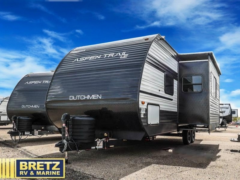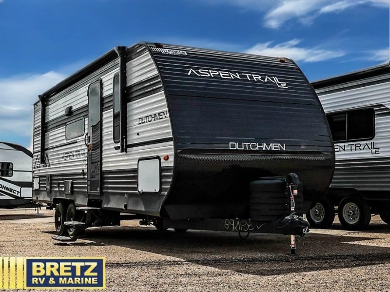 With any Aspen Trail LE travel trailer by Dutchmen, you will have a durable roof structure with a TPO roof, 3/8" decking, an insulated structure with a metal exterior panel, plus superior A/C cooling for those hot summer camping months. The interior offers a Home Series interior design collection for an at home feel, full extension drawer guides throughout, oversized windows, pleated shades, and no carpet to quickly clean up sand and water from the lake. You'll also appreciate the magnetic baggage door catches, a high output furnace, an on-demand water heater, and the Solar Spirit Packages that will allow you to do some off-grid camping. Make your selection today and enjoy a smaller, lighter-weight RV!