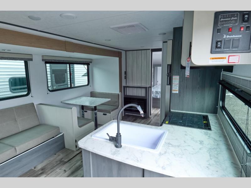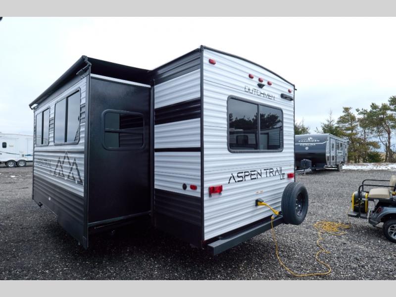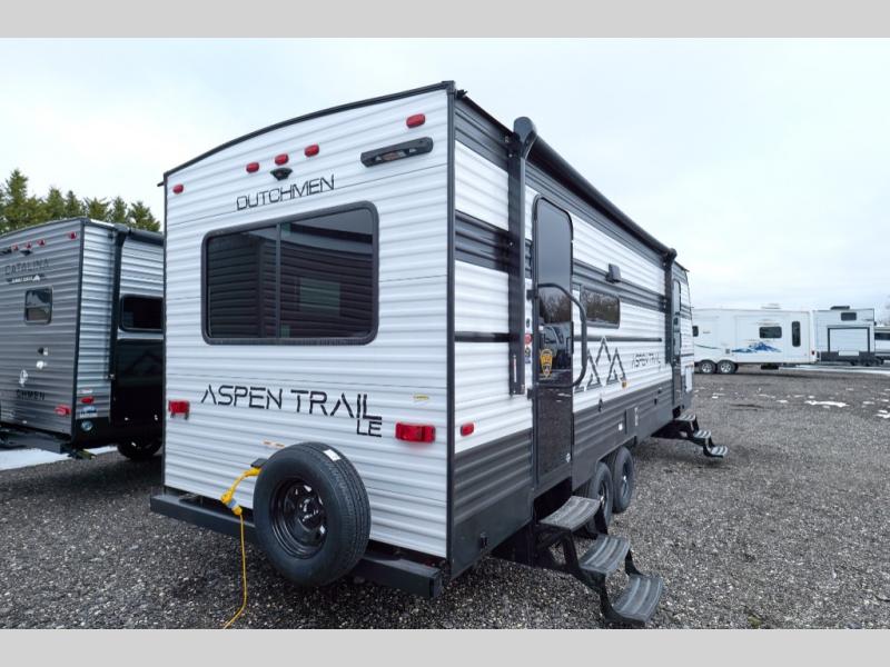 With any Aspen Trail LE travel trailer by Dutchmen, you will have front diamond plate protection, magnetic baggage door catches, and easy lube axles for smooth towing. The interior offers a Home Series interior design collection for an at-home feel, full extension drawer guides throughout, oversized windows, pleated shades, and no carpet to quickly clean up sand and water from the lake. You'll also appreciate the high efficiency furnace, on-demand tankless water heater, and the Solar Spirit Packages for off-grid capabilities. Make your selection today and enjoy a smaller, lighter-weight RV!