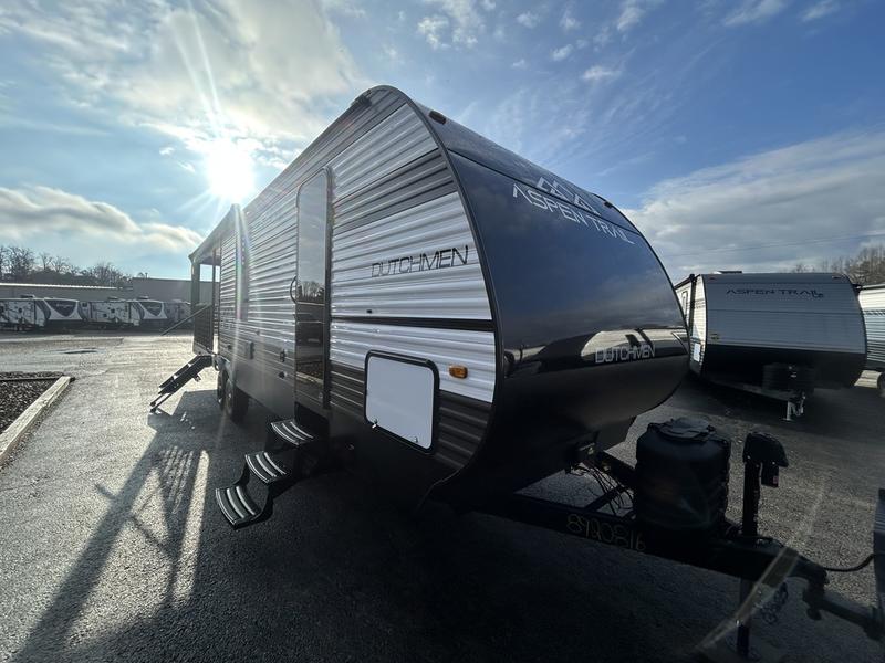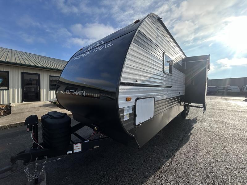 You will find more standard features and more value in each one of these Dutchmen RV Aspen Trail travel trailers! There is a smooth metal front end, diamond plate rock guard, backup camera prep, plus many more exterior features. Experience all of the power with power stabilizers, a power awning, and a power tongue jack for easy setting up and breaking down. The heated and enclosed underbelly provides an extra layer of protection for your unit's vitals so you can camp further into the year. With aluminum steps at the main entry, you will have a solid platform of stability as you enter and exit, plus they are easy to expand or store away. Inside, you'll love the look of the Home Series interior design collection and designer upholstered window valances, plus there is upgraded residential flooring that is easy to keep clean!