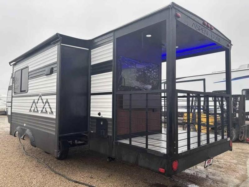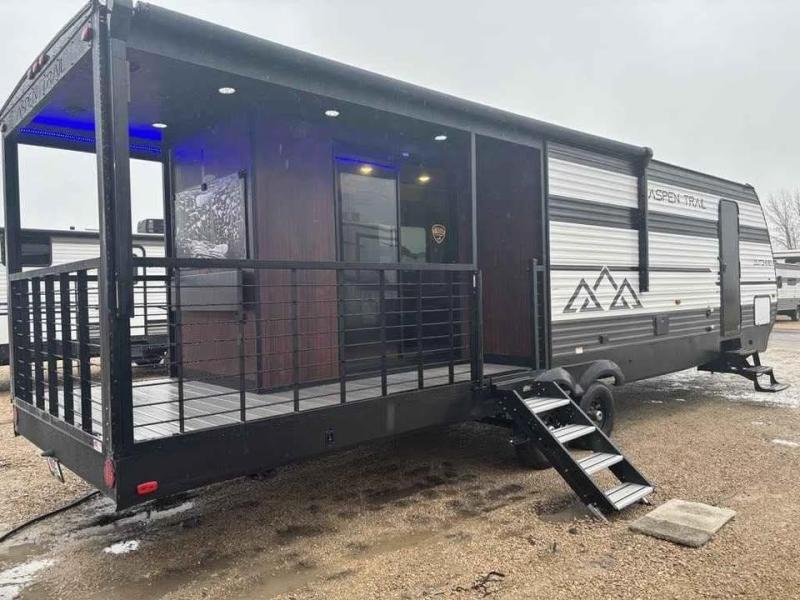 You will find more standard features and more value in each one of these Dutchmen RV Aspen Trail travel trailers! There is a smooth metal front end, diamond plate rock guard, backup camera prep, plus many more exterior features. Experience all of the power with power stabilizers, a power awning, and a power tongue jack for easy setting up and breaking down. The heated and enclosed underbelly provides an extra layer of protection for your unit's vitals so you can camp further into the year. With aluminum steps at the main entry, you will have a solid platform of stability as you enter and exit, plus they are easy to expand or store away. Inside, you'll love the look of the Home Series interior design collection and designer upholstered window valances, plus there is upgraded residential flooring that is easy to keep clean!