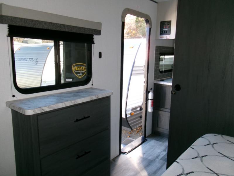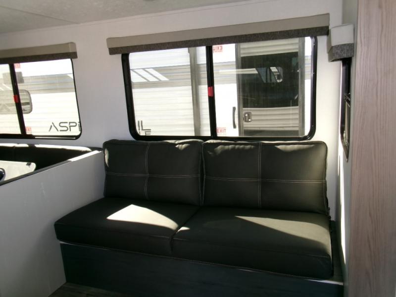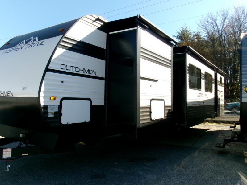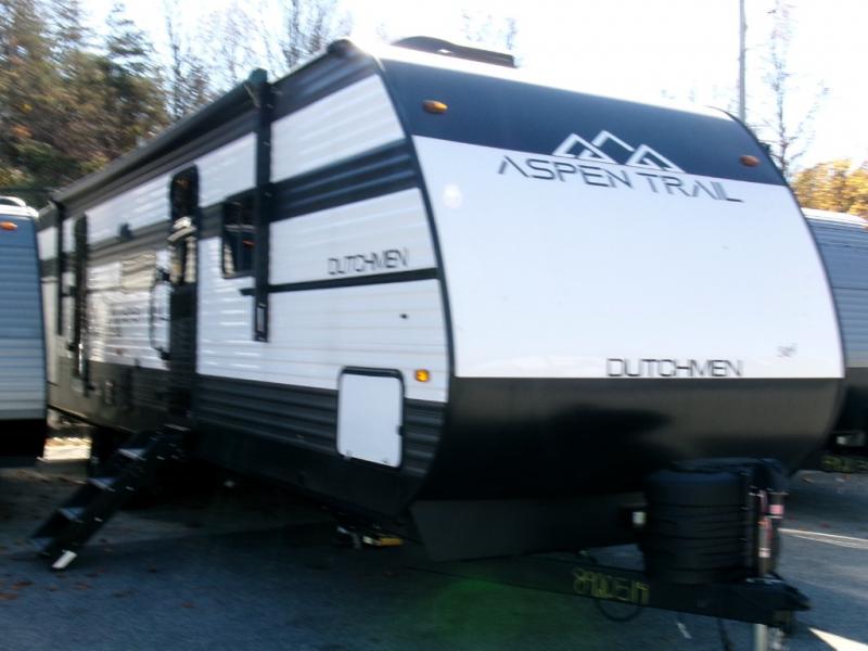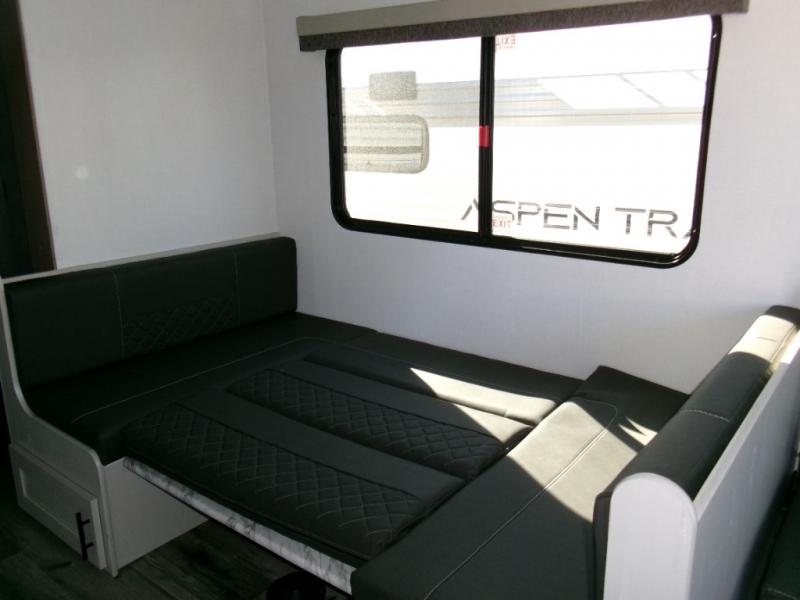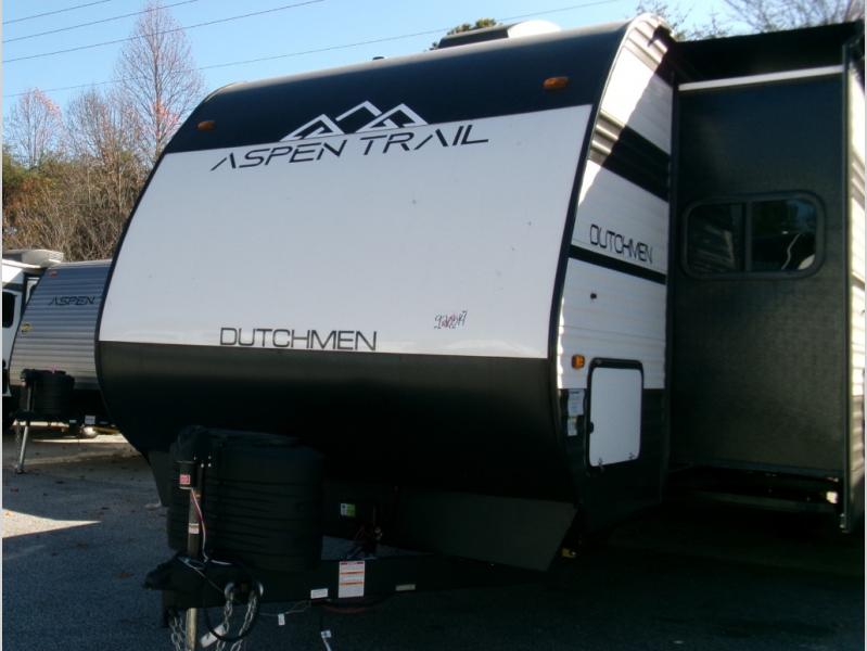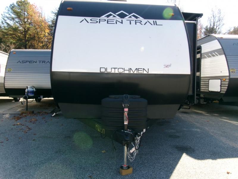 You will find more standard features and more value in each one of these Dutchmen RV Aspen Trail travel trailers! There is a smooth metal front end, diamond plate rock guard, backup camera prep, plus many more exterior features. Experience all of the power with power stabilizers, a power awning, and a power tongue jack for easy setting up and breaking down. The heated and enclosed underbelly provides an extra layer of protection for your unit's vitals so you can camp further into the year. With aluminum steps at the main entry, you will have a solid platform of stability as you enter and exit, plus they are easy to expand or store away. Inside, you'll love the look of the Home Series interior design collection and designer upholstered window valances, plus there is upgraded residential flooring that is easy to keep clean!