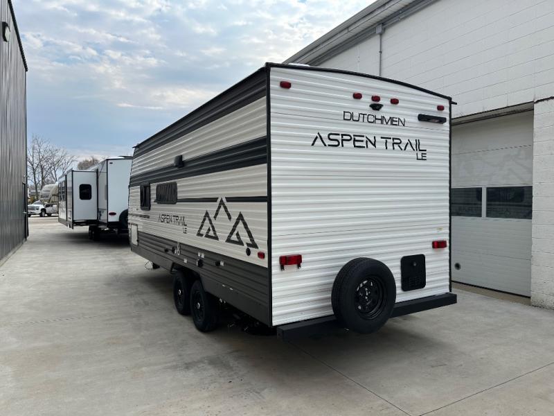 With any Aspen Trail LE travel trailer by Dutchmen, you will have a durable roof structure with a TPO roof, 3/8" decking, an insulated structure with a metal exterior panel, plus superior A/C cooling for those hot summer camping months. The interior offers a Home Series interior design collection for an at home feel, full extension drawer guides throughout, oversized windows, pleated shades, and no carpet to quickly clean up sand and water from the lake. You'll also appreciate the magnetic baggage door catches, a high output furnace, an on-demand water heater, and the Solar Spirit Packages that will allow you to do some off-grid camping. Make your selection today and enjoy a smaller, lighter-weight RV!