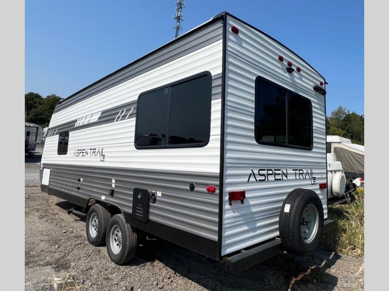 With any Aspen Trail LE travel trailer by Dutchmen, you will have a durable roof structure with a TPO roof, 3/8" decking, an insulated structure with a metal exterior panel, plus superior A/C cooling for those hot summer camping months. The interior offers a Home Series interior design collection for an at home feel, full extension drawer guides throughout, oversized windows, pleated shades, and no carpet to quickly clean up sand and water from the lake. You'll also appreciate the magnetic baggage door catches, a high output furnace, an on-demand water heater, and the Solar Spirit Packages that will allow you to do some off-grid camping. Make your selection today and enjoy a smaller, lighter-weight RV!