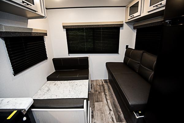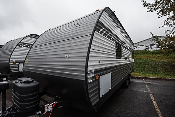 Whatever reason you camp, this lightweight trailer allows you to easily tow to your campsite, and enjoy comforts of home such as your own residential queen bed, wardrobe storage, a full bathroom with a shower, and furniture to relax and dine at. The sofa and booth dinette are across from each other, allowing you to visit with other RVers or your family. The cook will have an oven and a microwave to make meals, and a 10 cu. ft. 12V refrigerator for cold items, plus a galley sink with high rise faucet to keep the dishes clean.
