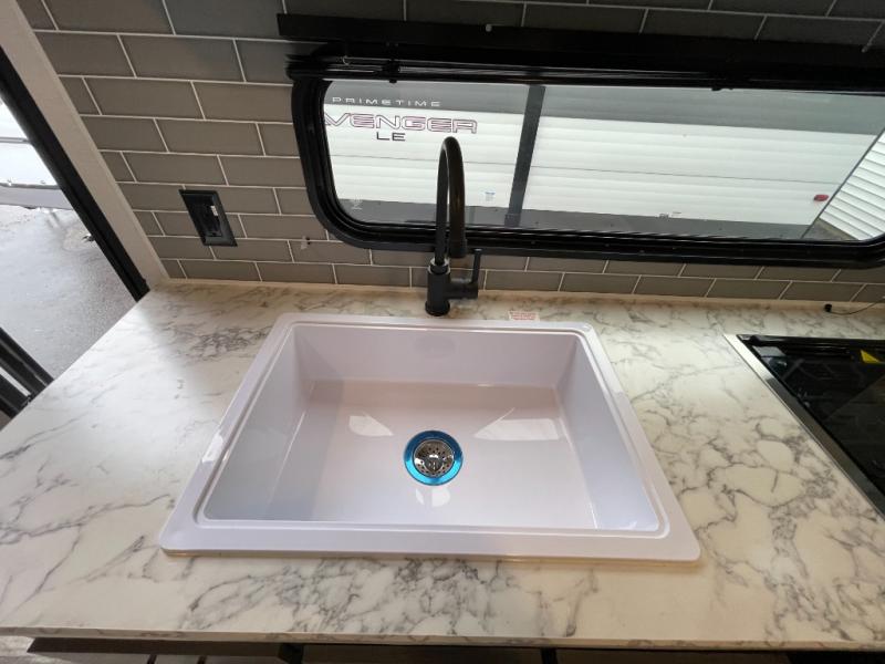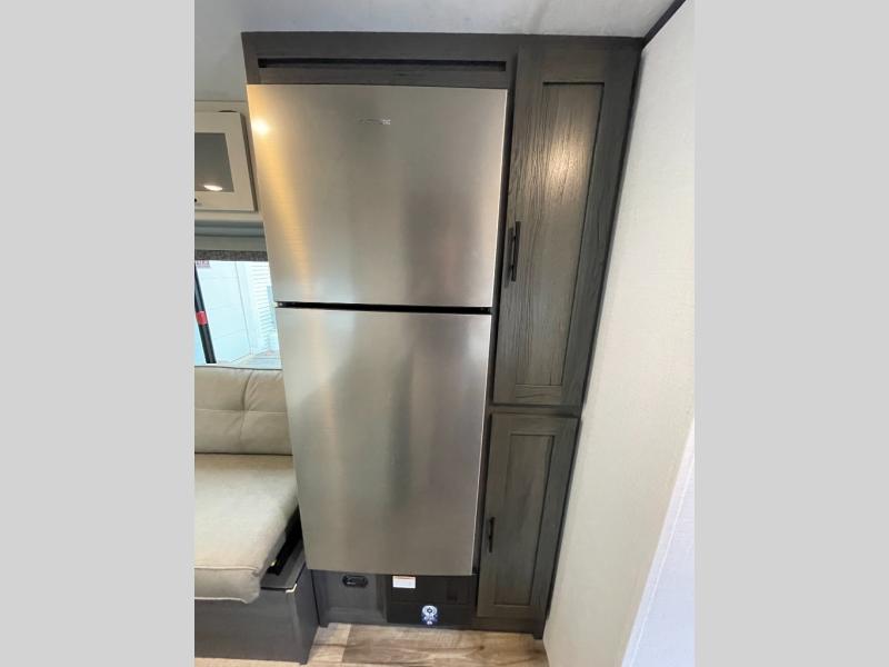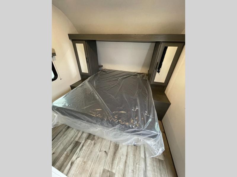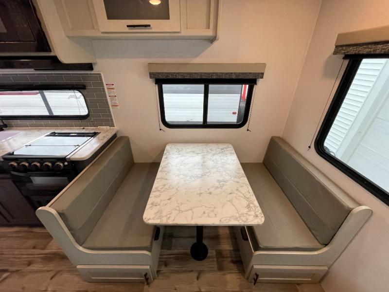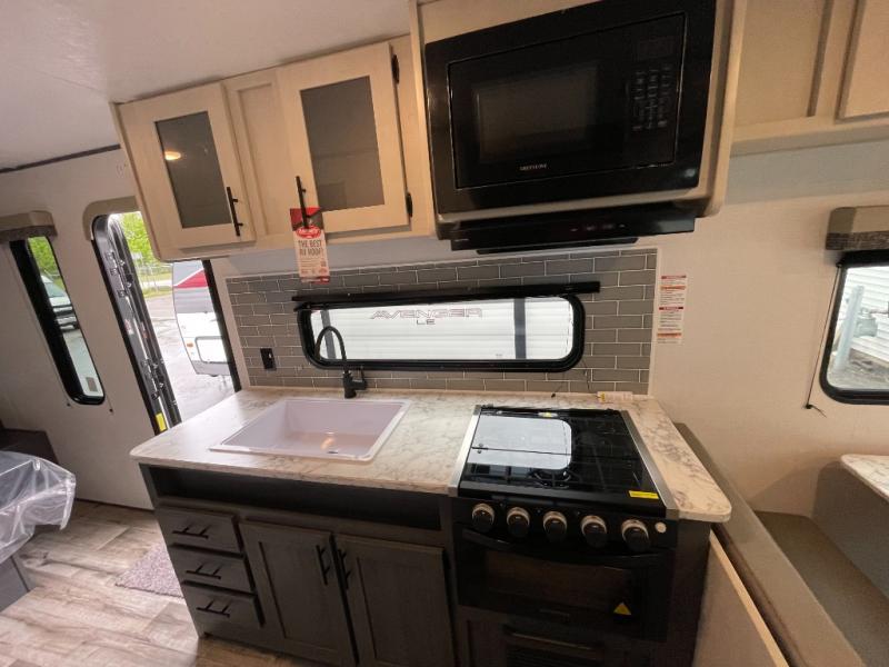 Whatever reason you camp, this lightweight trailer allows you to easily tow to your campsite, and enjoy comforts of home such as your own residential queen bed, wardrobe storage, a full bathroom with a shower, and furniture to relax and dine at. The sofa and booth dinette are across from each other, allowing you to visit with other RVers or your family. The cook will have an oven and a microwave to make meals, and a 10 cu. ft. 12V refrigerator for cold items, plus a galley sink with high rise faucet to keep the dishes clean.