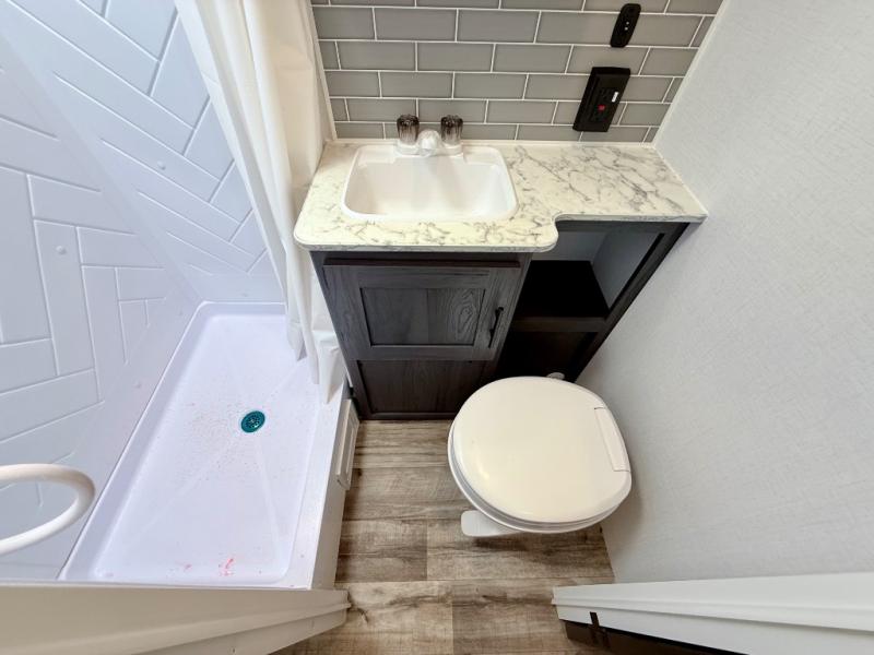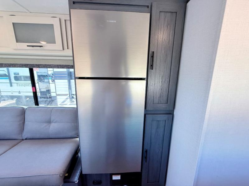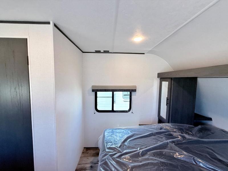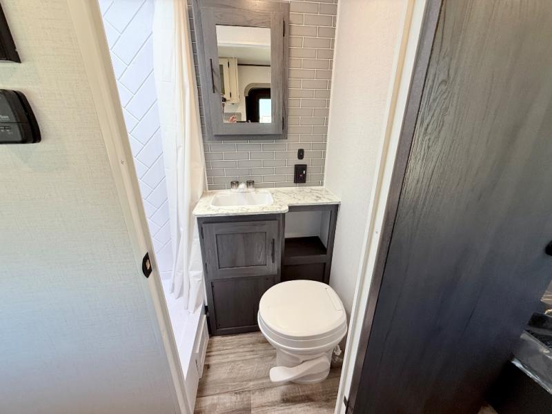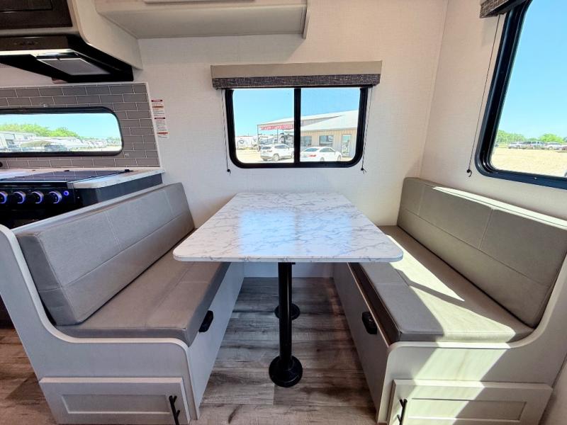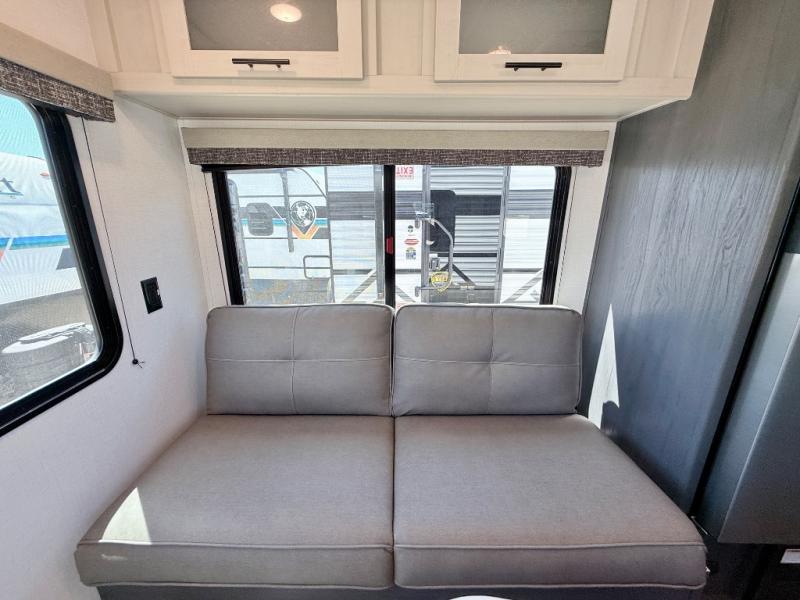 Whatever reason you camp, this lightweight trailer allows you to easily tow to your campsite, and enjoy comforts of home such as your own residential queen bed, wardrobe storage, a full bathroom with a shower, and furniture to relax and dine at. The sofa and booth dinette are across from each other, allowing you to visit with other RVers or your family. The cook will have an oven and a microwave to make meals, and a 10 cu. ft. 12V refrigerator for cold items, plus a galley sink with high rise faucet to keep the dishes clean.