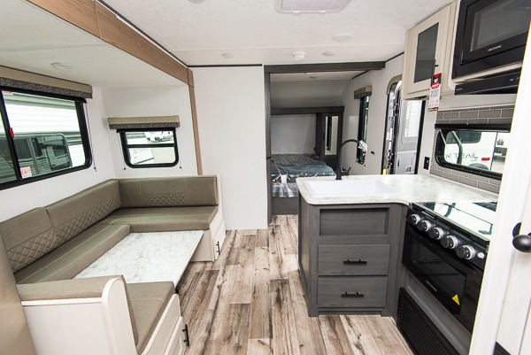 With any Aspen Trail LE travel trailer by Dutchmen, you will have front diamond plate protection, magnetic baggage door catches, and easy lube axles for smooth towing. The interior offers a Home Series interior design collection for an at-home feel, full extension drawer guides throughout, oversized windows, pleated shades, and no carpet to quickly clean up sand and water from the lake. You'll also appreciate the high efficiency furnace, on-demand tankless water heater, and the Solar Spirit Packages for off-grid capabilities. Make your selection today and enjoy a smaller, lighter-weight RV!