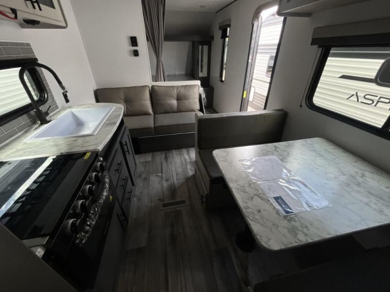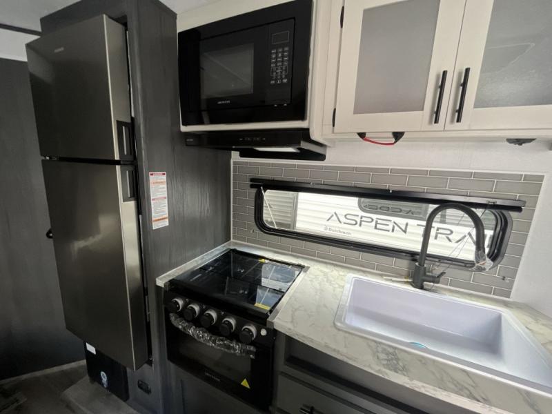 With any Aspen Trail LE travel trailer by Dutchmen, you will have a durable roof structure with a TPO roof, 3/8" decking, an insulated structure with a metal exterior panel, plus superior A/C cooling for those hot summer camping months. The interior offers a Home Series interior design collection for an at home feel, full extension drawer guides throughout, oversized windows, pleated shades, and no carpet to quickly clean up sand and water from the lake. You'll also appreciate the magnetic baggage door catches, a high output furnace, an on-demand water heater, and the Solar Spirit Packages that will allow you to do some off-grid camping. Make your selection today and enjoy a smaller, lighter-weight RV!