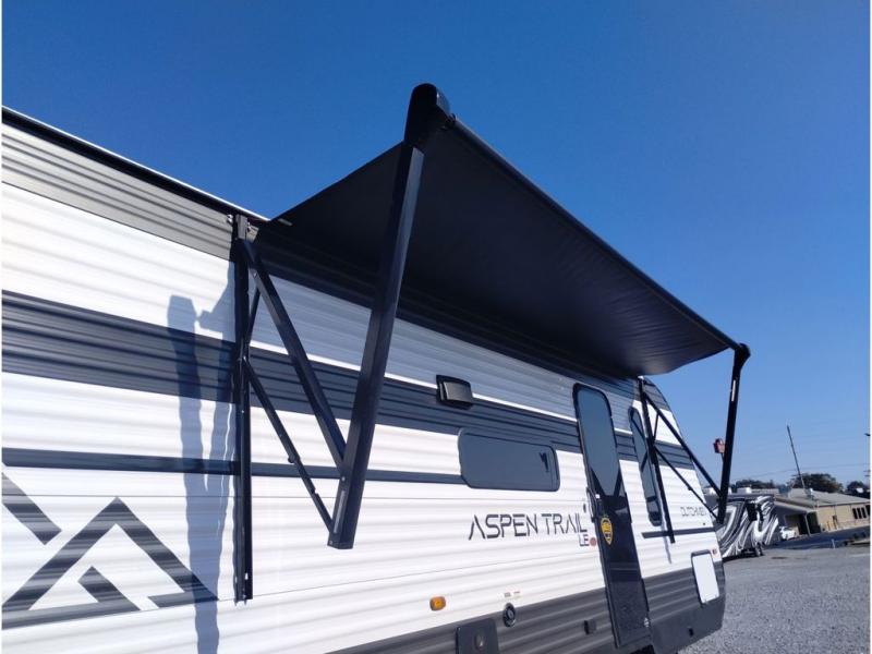 With any Aspen Trail LE travel trailer by Dutchmen, you will have a durable roof structure with a TPO roof, 3/8" decking, an insulated structure with a metal exterior panel, plus superior A/C cooling for those hot summer camping months. The interior offers a Home Series interior design collection for an at home feel, full extension drawer guides throughout, oversized windows, pleated shades, and no carpet to quickly clean up sand and water from the lake. You'll also appreciate the magnetic baggage door catches, a high output furnace, an on-demand water heater, and the Solar Spirit Packages that will allow you to do some off-grid camping. Make your selection today and enjoy a smaller, lighter-weight RV!